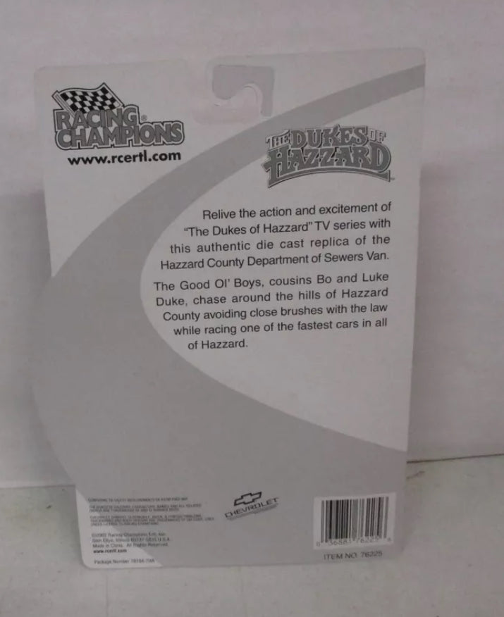 Relive the action and excitement of "The Dukes of Hazzard" TV series with this authentic die cast replica of the Hazzard County Department of Sewers Van.