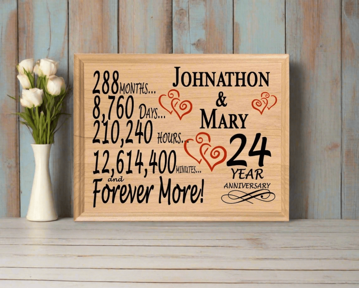 This 24th anniversary gift is more than a plaque—it’s a tribute to the strength, joy, and love that comes from 24 years together. Personalized with both names and crafted from solid American maple, it’s a keepsake they’ll treasure forever. Start customizing yours today.