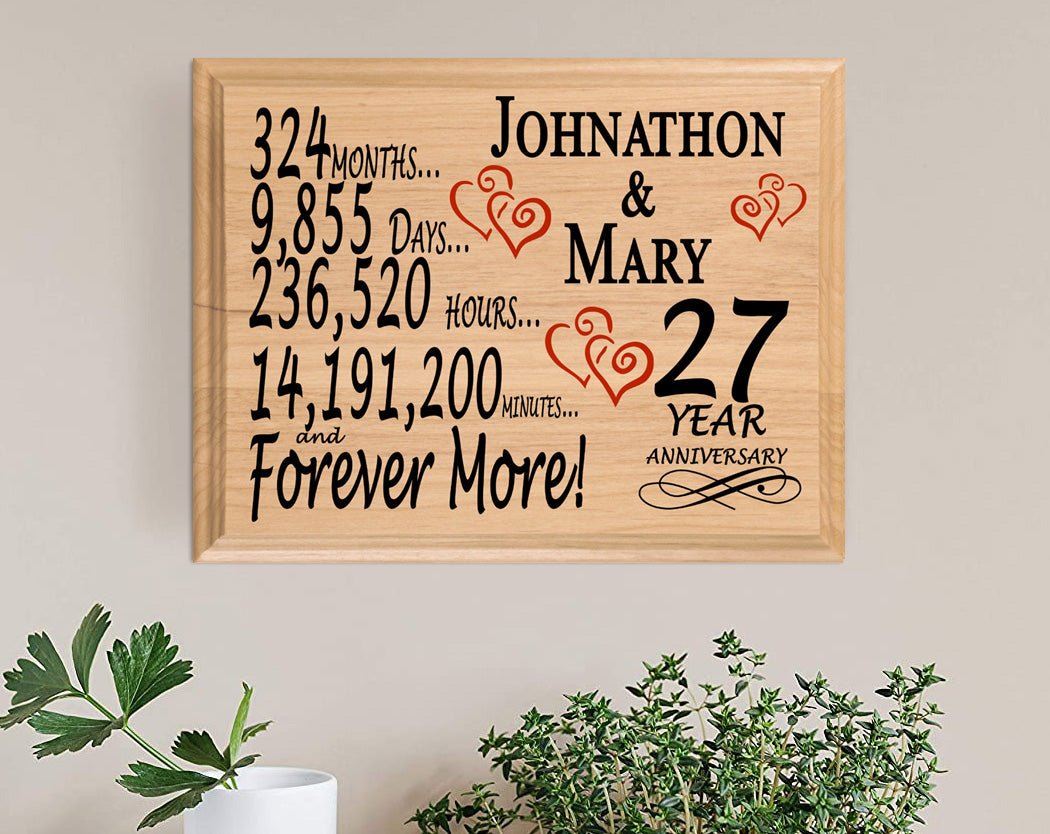 Personalized 27th Anniversary Gift – Custom Wood Keepsake for Husband, Wife, or Couple
