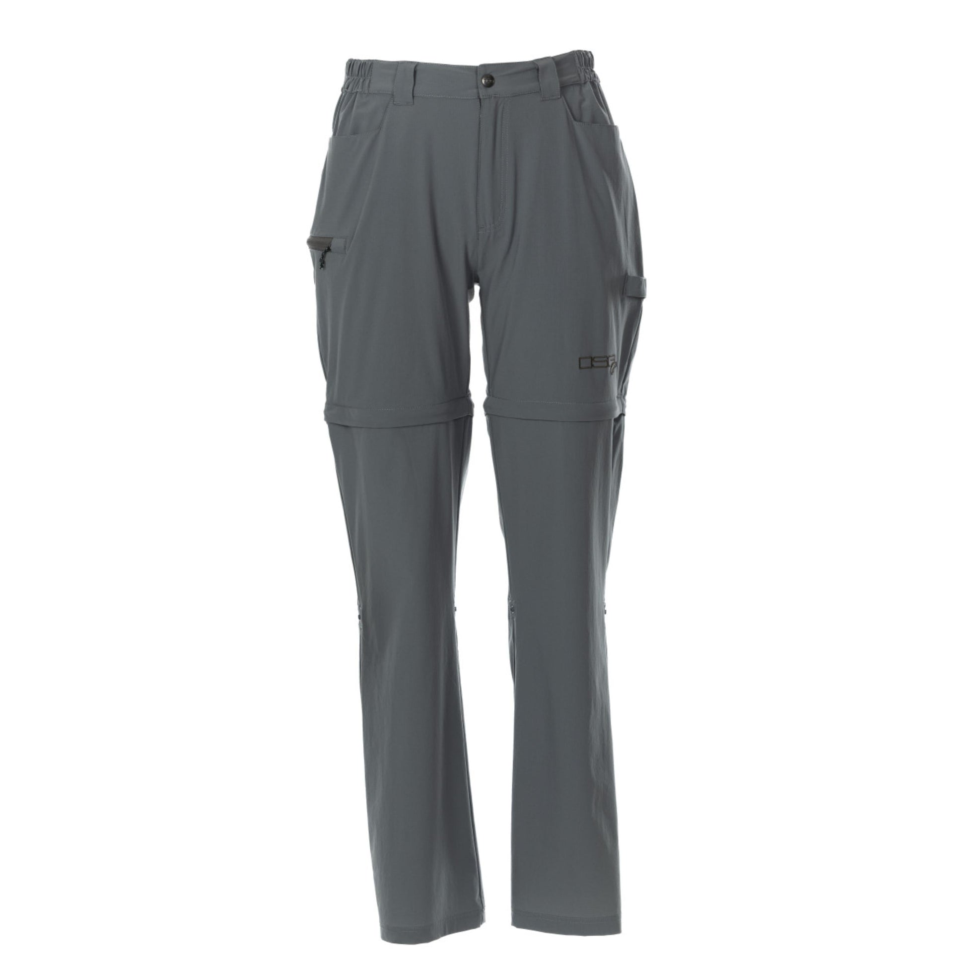 The 3-in-1 Zip Off Pant is the perfect companion to any fishing trip. These pants are made of a moisture wicking ripstop fabric and can be worn 3 different ways: as pants, snapped up as capris, or zipped off as shorts. Tool loops and pockets are great for storing and holding.