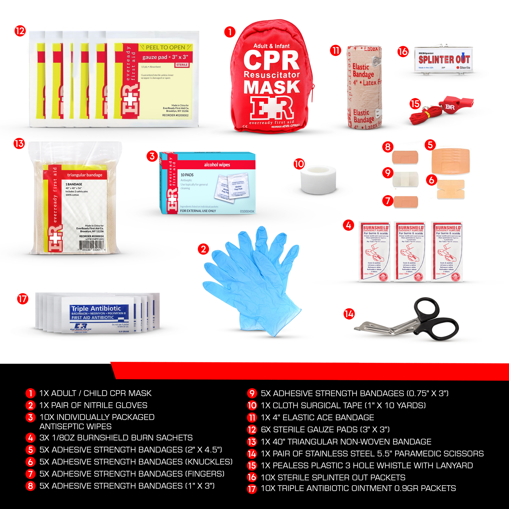 - CPR-Prepared – Includes both adult and infant CPR masks with one-way valves for safe, effective resuscitation.