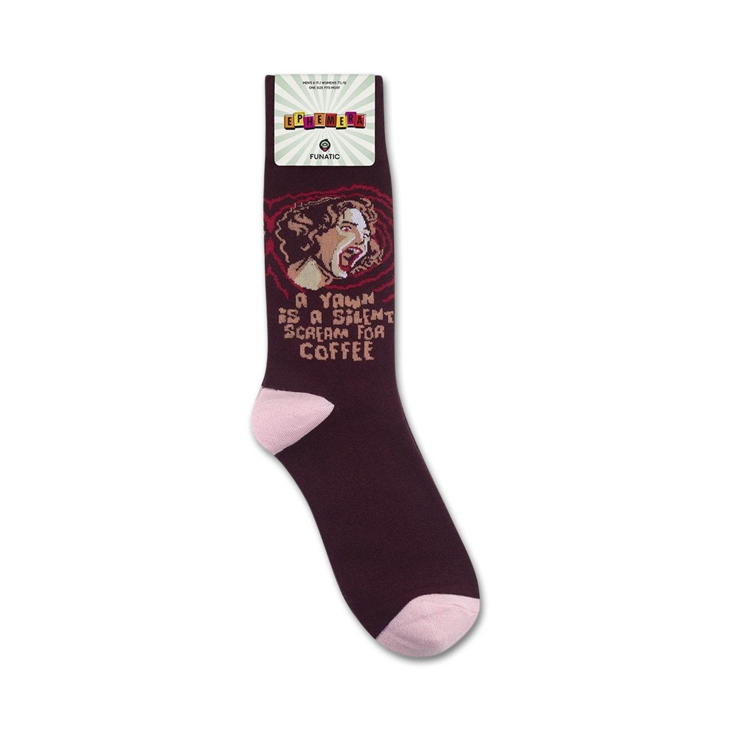 Unleash your inner barista with our 'A Yawn Is A Silent Scream' socks! Slip into these dark purple, crew-length socks with light purple toe and heel and proudly display your love for coffee. Featuring the hilarious saying "A yawn is a silent scream for coffee," these comfy socks will fuel your caffeine cravings and brighten up your day. Perfect for those early mornings or post-lunch slumps, they'll remind you that a cuppa joe is just a sip away. Show off your passion for coffee and add a touch of humor to your sock game.