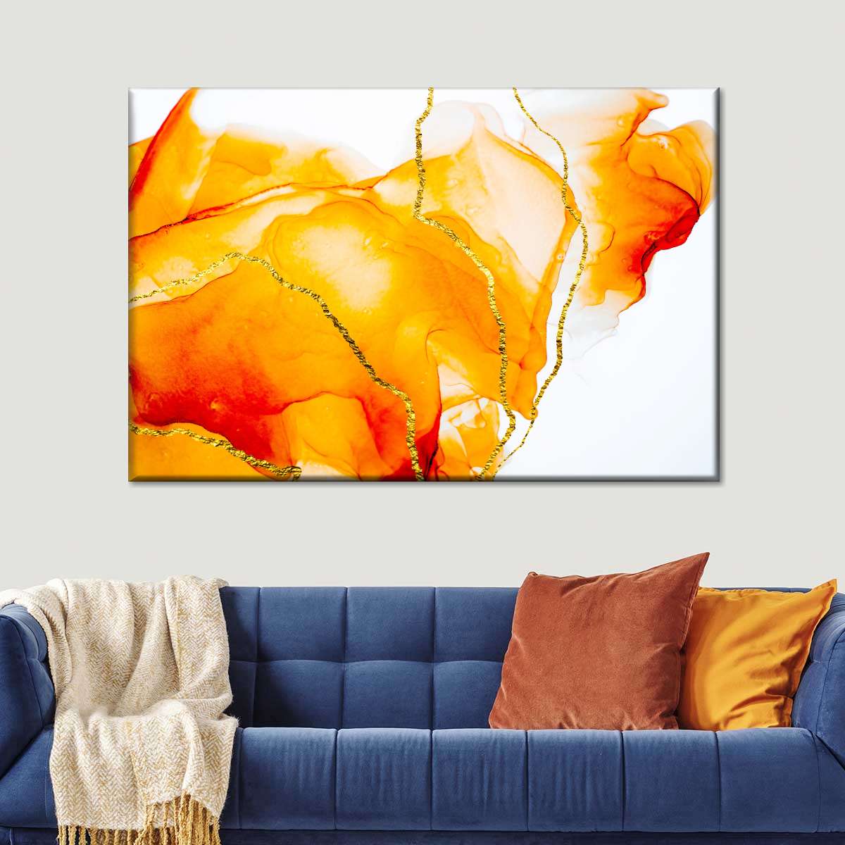 Abstract Orange Spill Wall Art carefully handcrafted to bring unique style into your home. Change the entire feel of any space and make an interesting statement with this abstract canvas print.