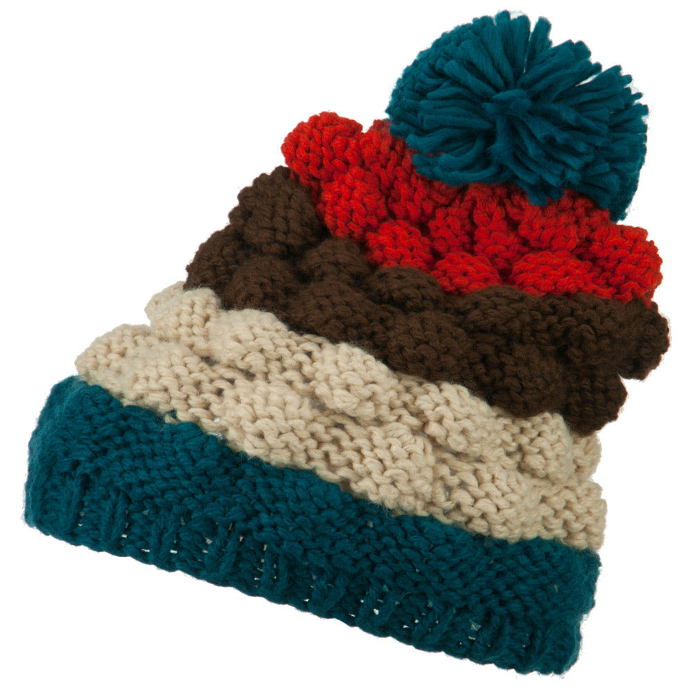 Acrylic Striped Pom Pom Beanie