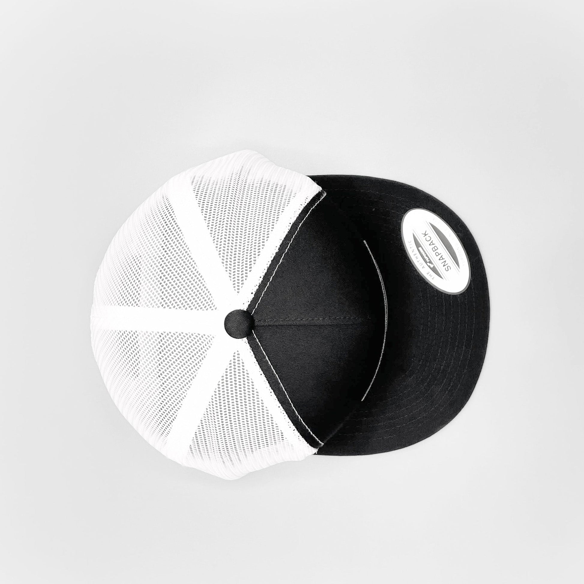 - - Classic black and white mesh trucker cap with premium, matching mesh panels