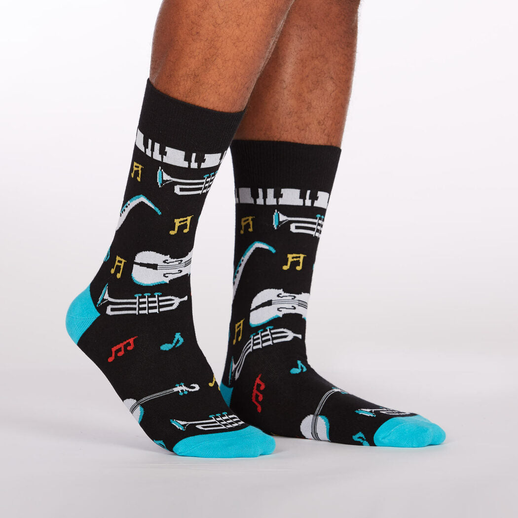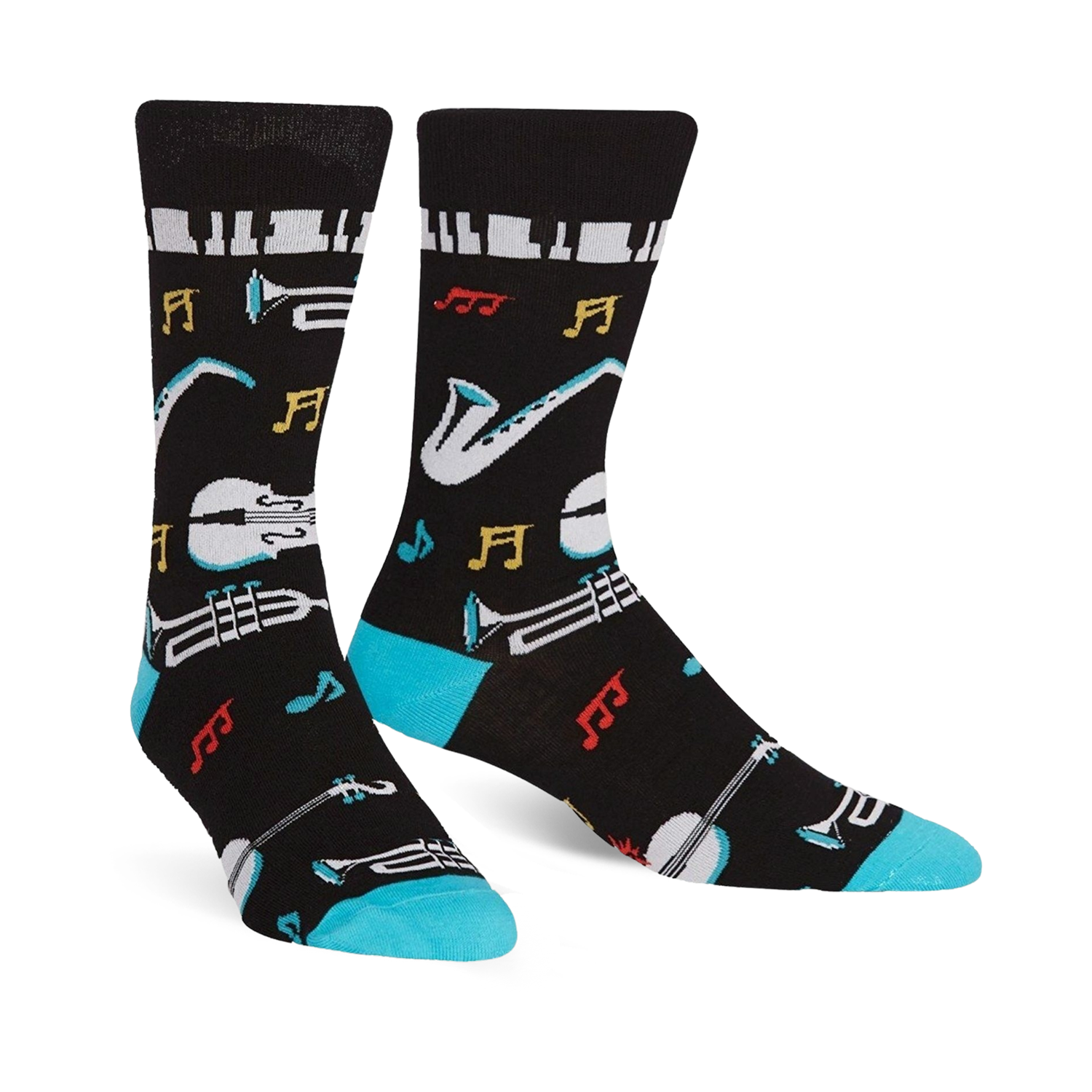 Sometimes you can't help but tap your toes to the tune in the coffeeshop. And once in a while, the jingle on that commercial is too good to keep from belting it out on the subway. For the lucky among us, music courses through our veins no matter, the place, time, or appropriateness. And we won't be silenced. These cool pair of socks will have you jiving in no time!