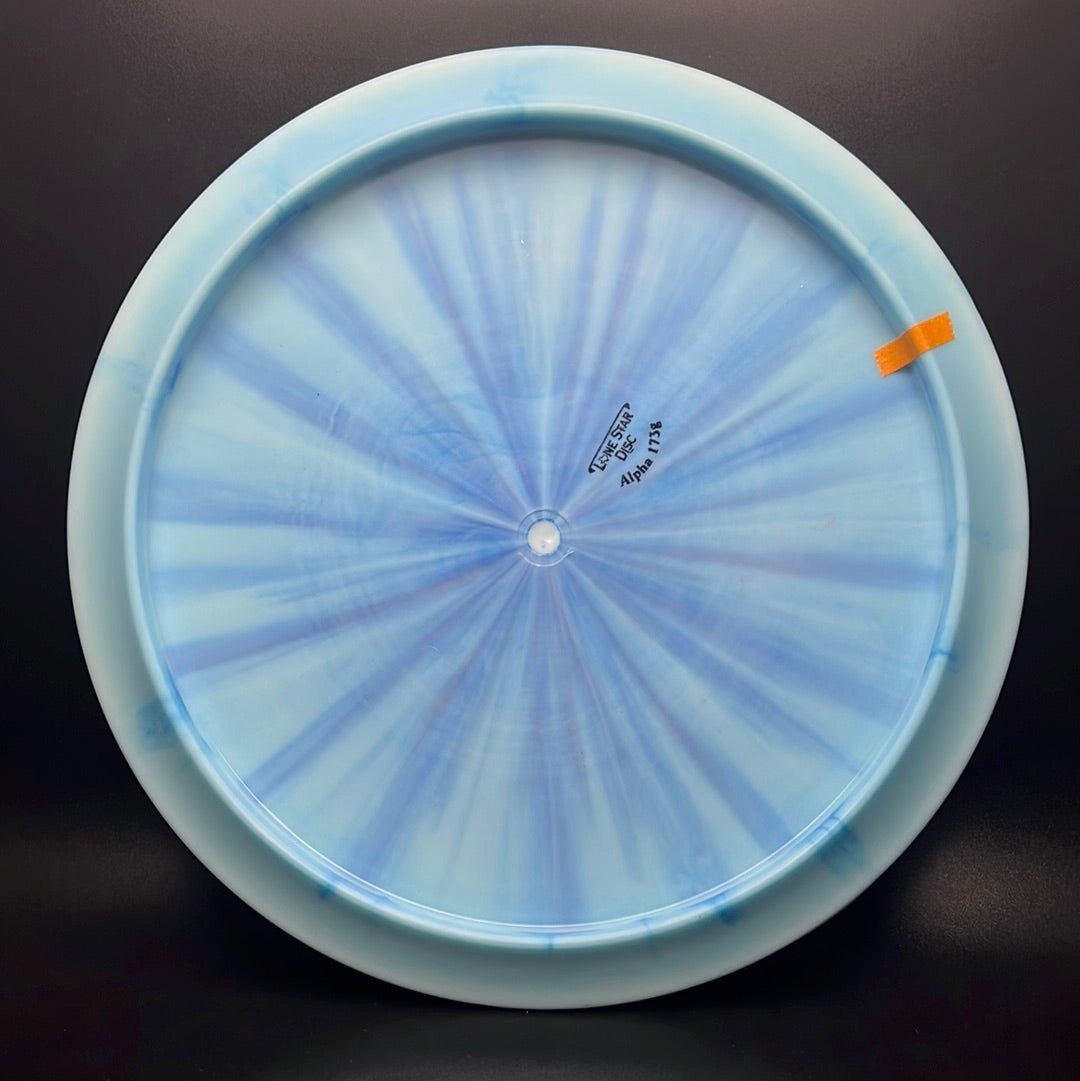 Alpha Plastic is an opaque premium plastic featuring great grip and durability. Whether cold, wet, or dry, you can feel confident with the Alpha plastic in your hand. It will season in over time. It is designed to be a little more firm than Bravo plastic and could be compared to Discraft's ESP.