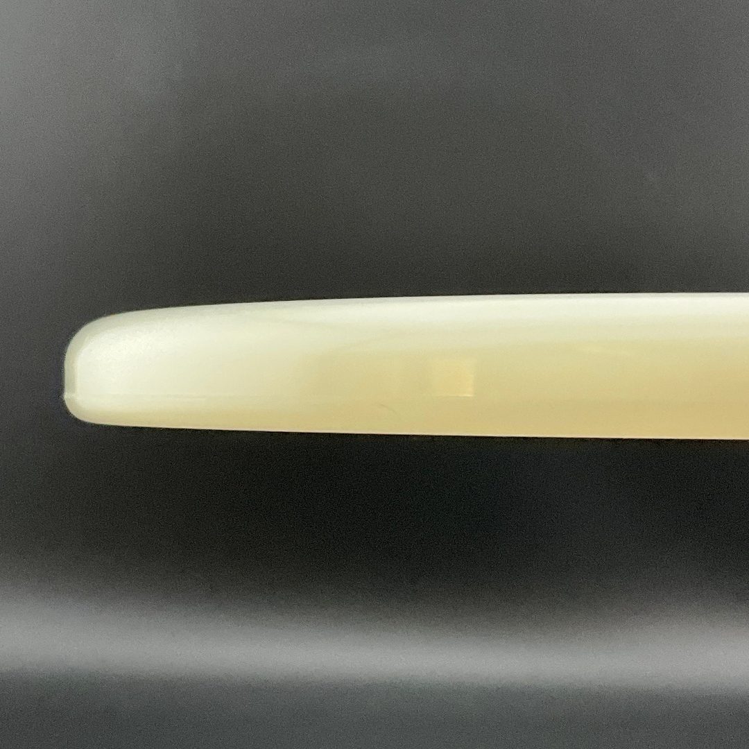 Lone Star's Alpha Glow plastic feels similar to their Alpha plastic, but it comes in a yellow-green color and glows in the dark. It has light flexibility and a firm rim.