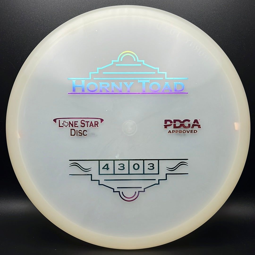 The Lone Star Disc Horny Toad is an overstable putter designed for precise upshots, offering excellent glide and consistent fade. It works well with both high-power backhands and forehands, even in toughest windy conditions.
