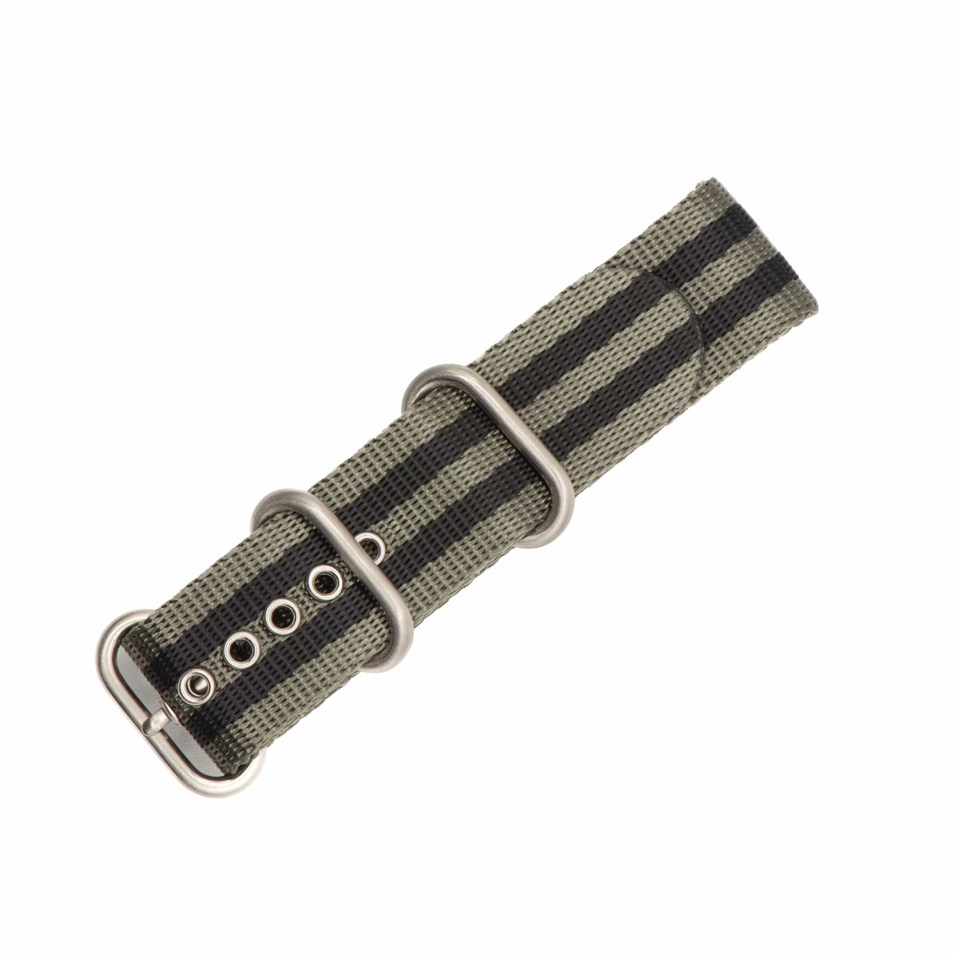The strap itself is made from our AlphaShark nylon which features 1.4mm thick high tensile strength "seat belt" webbing. Steel ring buckle and keepers are double-stitched on the strap resulting in a never-fail construction. Strap holes are reinforced with metal grommets for a durable connection. It's our most rugged and durable strap yet - we can't wait for you to try it out and put it to the test.