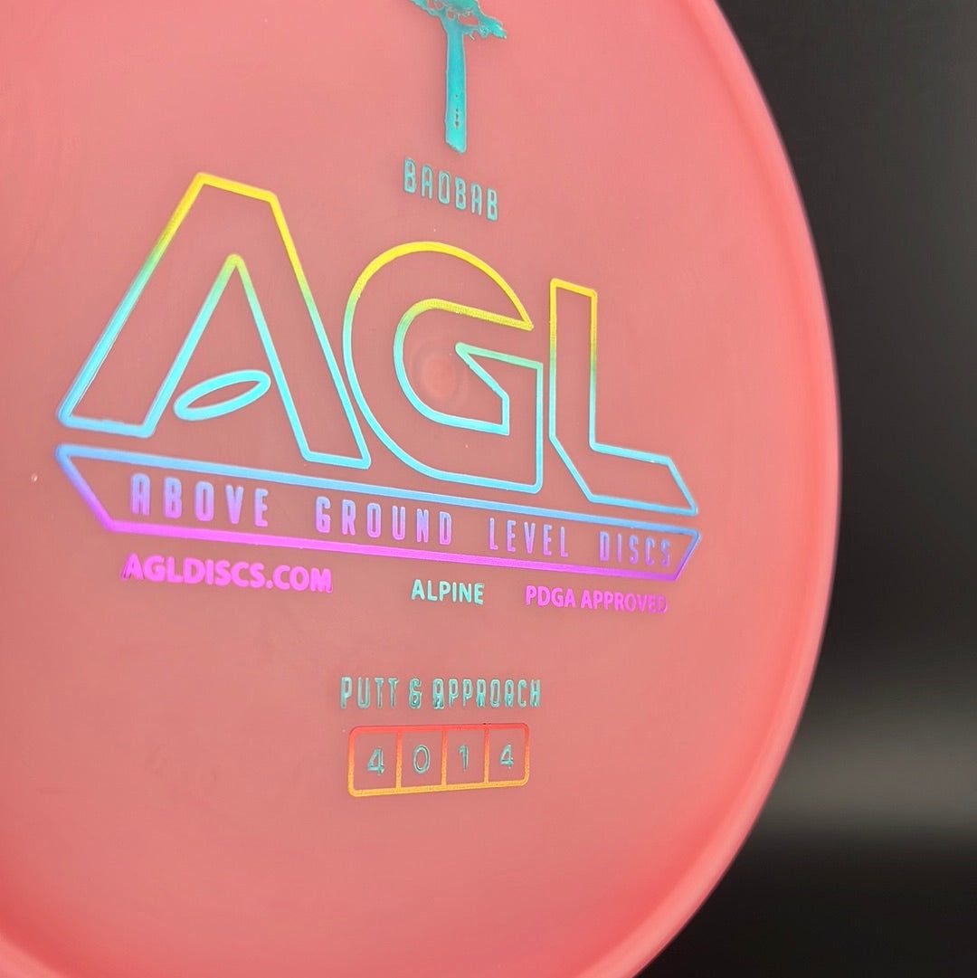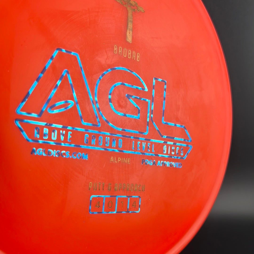 The AGL Discs Baobab is an extremely overstable putt and approach disc golf disc. The Baobab sports a unique flight. This disc does not like to fly and when it does, it likes to fade hard. It has quickly become a favorite among those who have thrown it. The Boabab features a top bead and flat top making it comfortable to throw both backhand and forehand further increasing its versatility. This disc becomes a freight train of a forehand roller disc, hence earning the title the “Bao-Bowler”! Whether you need a long putt to fall quickly to avoid trouble, need a tight s-curve flight, or just need a disc to dump hard the Baobab will take your approach game Above Ground Level.