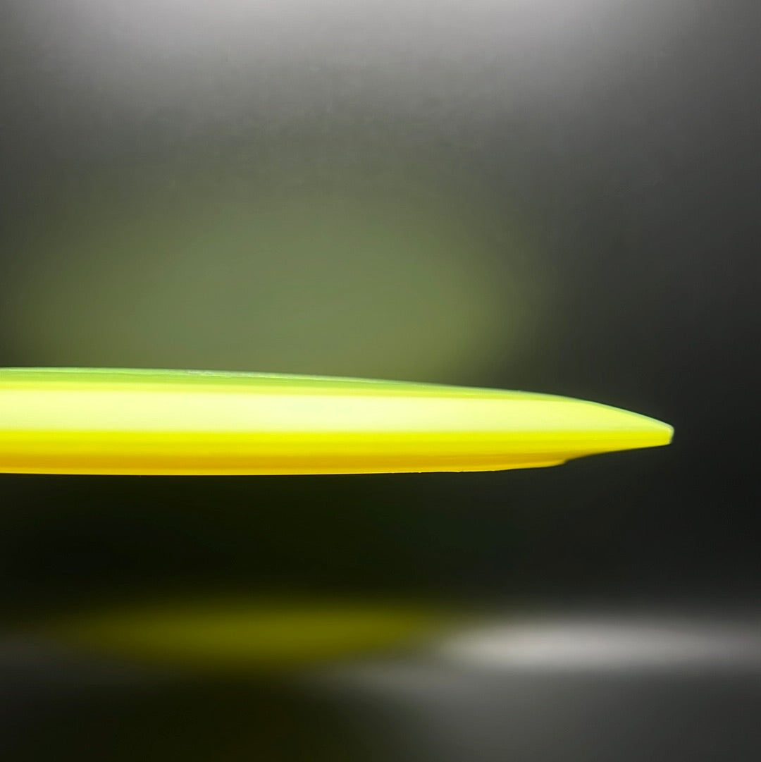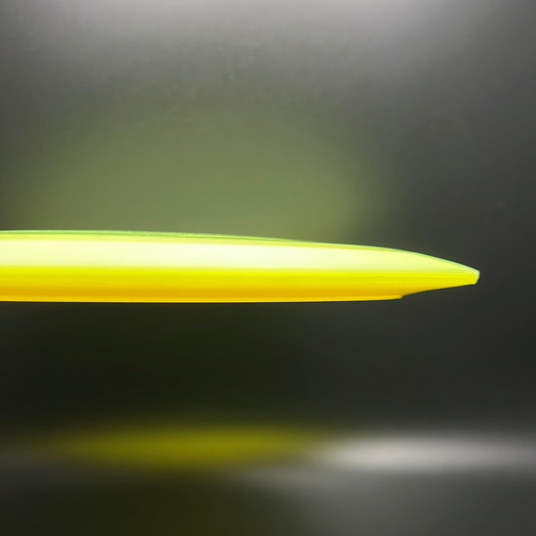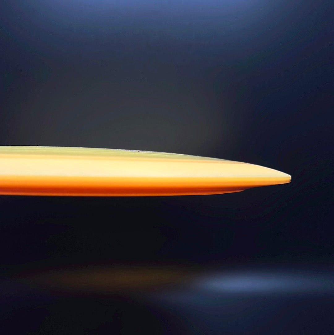 The Redwood is a high speed, "glidey", distance driver with just enough turn to make this a real contender for longest flying disc in your bag. We spent about 2.5yrs designing the top on this disc, and we incorporated some rather unique characteristics. The leading edge, on the topside of the disc, has been sandblasted - with the very thought in mind, like golf ball dimples, to actually increase speed as the air goes over the surface area that has been sandblasted. The bottom rim, we took from a discontinued Gateway driver and then made some modifications to it. It has micro-striations that function similarly, to the sandblasted top, in which it helps increase glide and therefore, distance.