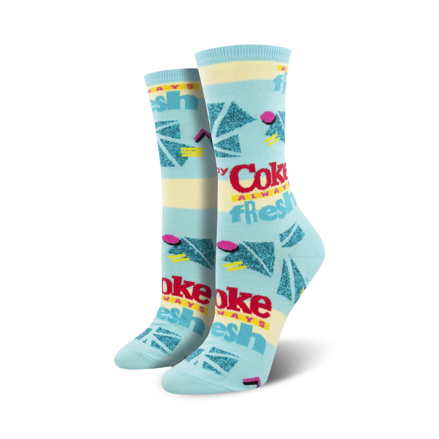 Always Fresh Coke socks: These blue beauties feature a burst of geometric shapes in rich red, yellow, and white. Perfect for fans of the iconic cola or anyone who loves a splash of retro fun in their wardrobe. Like an ice-cold sip of your favorite drink, these socks do more than refresh your feet, they bring a smile to your face. Whether you're adding them to your collection or gifting them to a Coke enthusiast, these socks are sure to be as refreshing as an ice-cold Coke on a hot summer day.