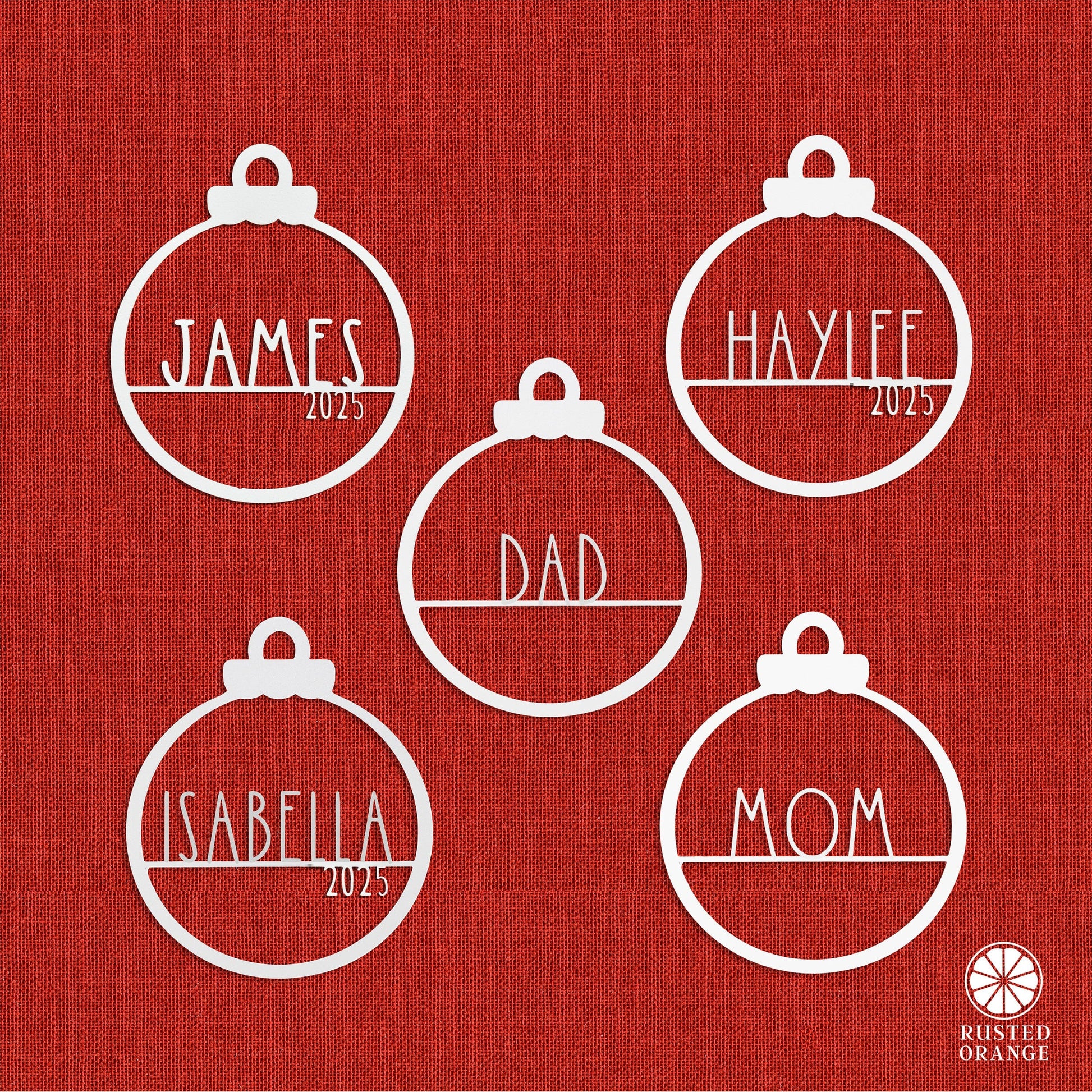 Add your favorite ribbon or jute each piece to your liking and hang on your Christmas tree, attach to a gift bag, or hang from your favorite home decor. You never have to worry about these breaking! They'll be a hit anywhere. Each ornament measure 4" in diameter. Comes with 5 ornaments that can each be uniquely customized. Perfect for a family name, business, or an individual name.