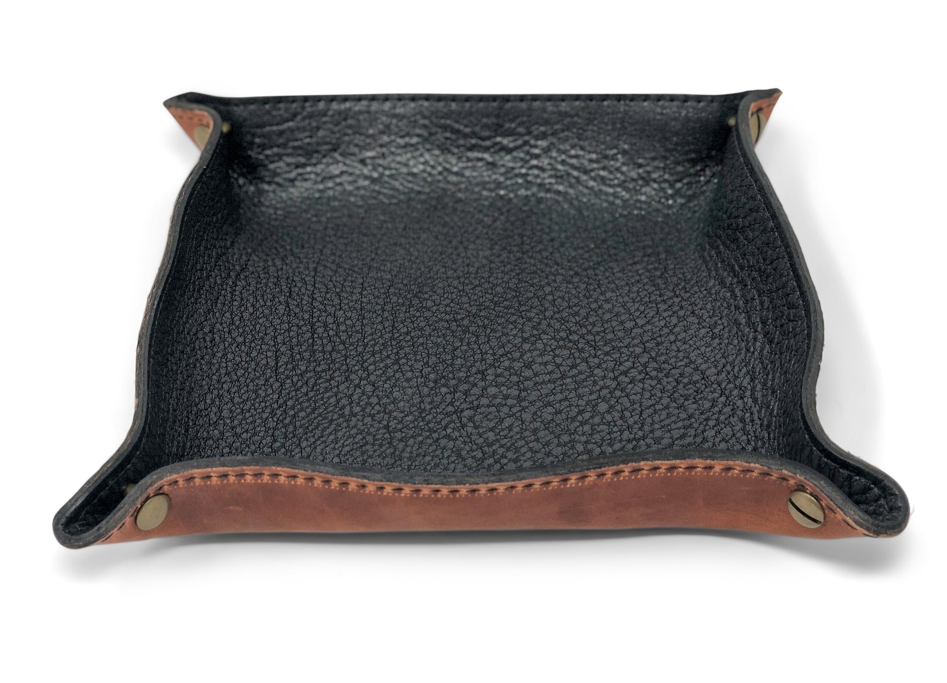 Finding your keys just got a whole lot easier! Purge your pockets when you get home or to the office with this handy tray. Made from American Shrunken Bison and finished with brass hardware this is a classy addition to organize your EDC.