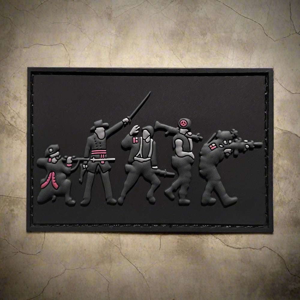 Our "American Bloodline" PVC vinyl patch showcases the evolution of the American warrior. From the Revolution to the Western frontier, the world conflicts to Vietnam, and culminating in today's modern fighter, each figure is a chapter in the saga of bravery and service. This design honors the spirit and sacrifice woven through centuries of American military heritage.