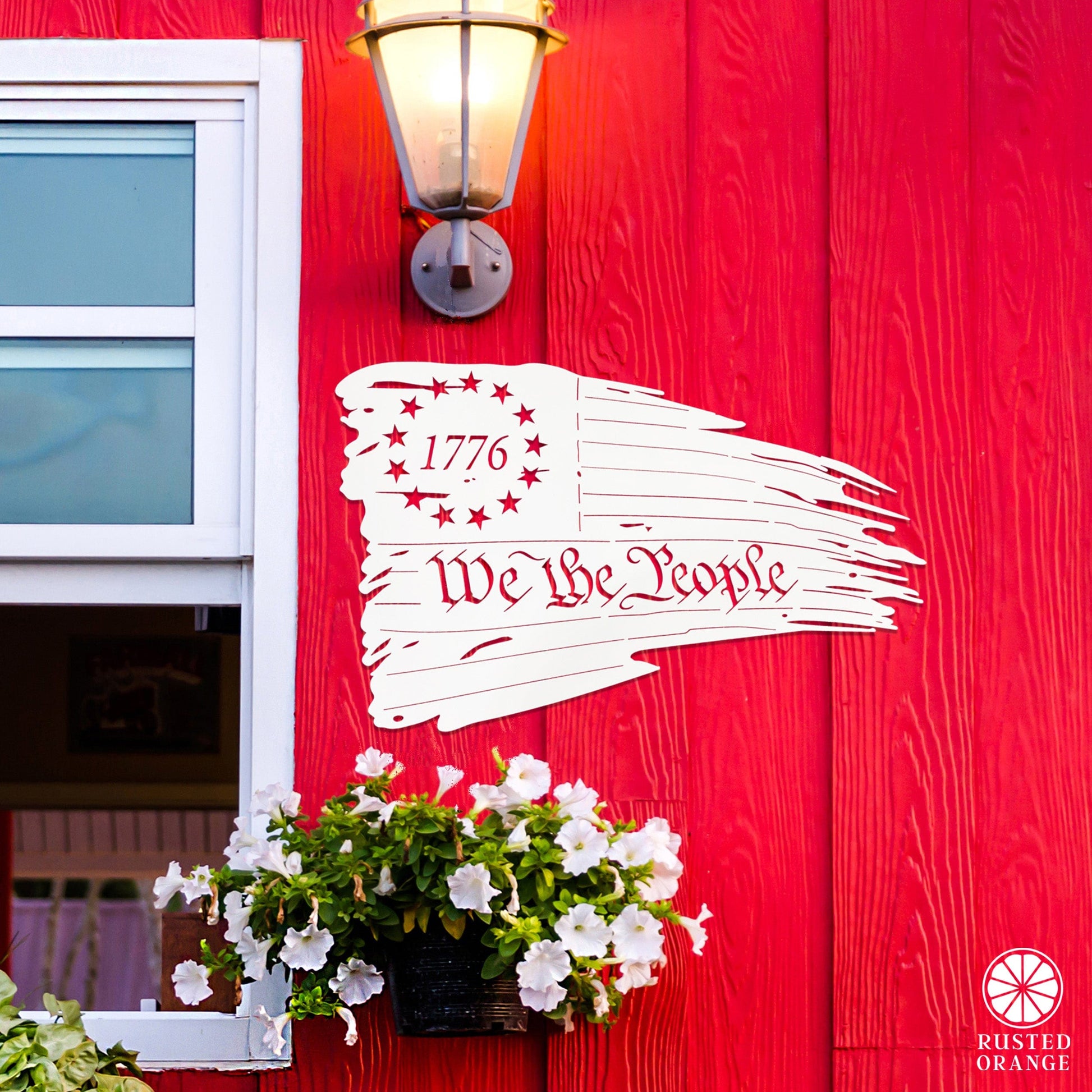 Patriotic Design: the 13-star emblem with 1776 inscription, along with the 'We The People' inscription, this distressed flag wall art is a celebration of America's rich history and undying spirit.