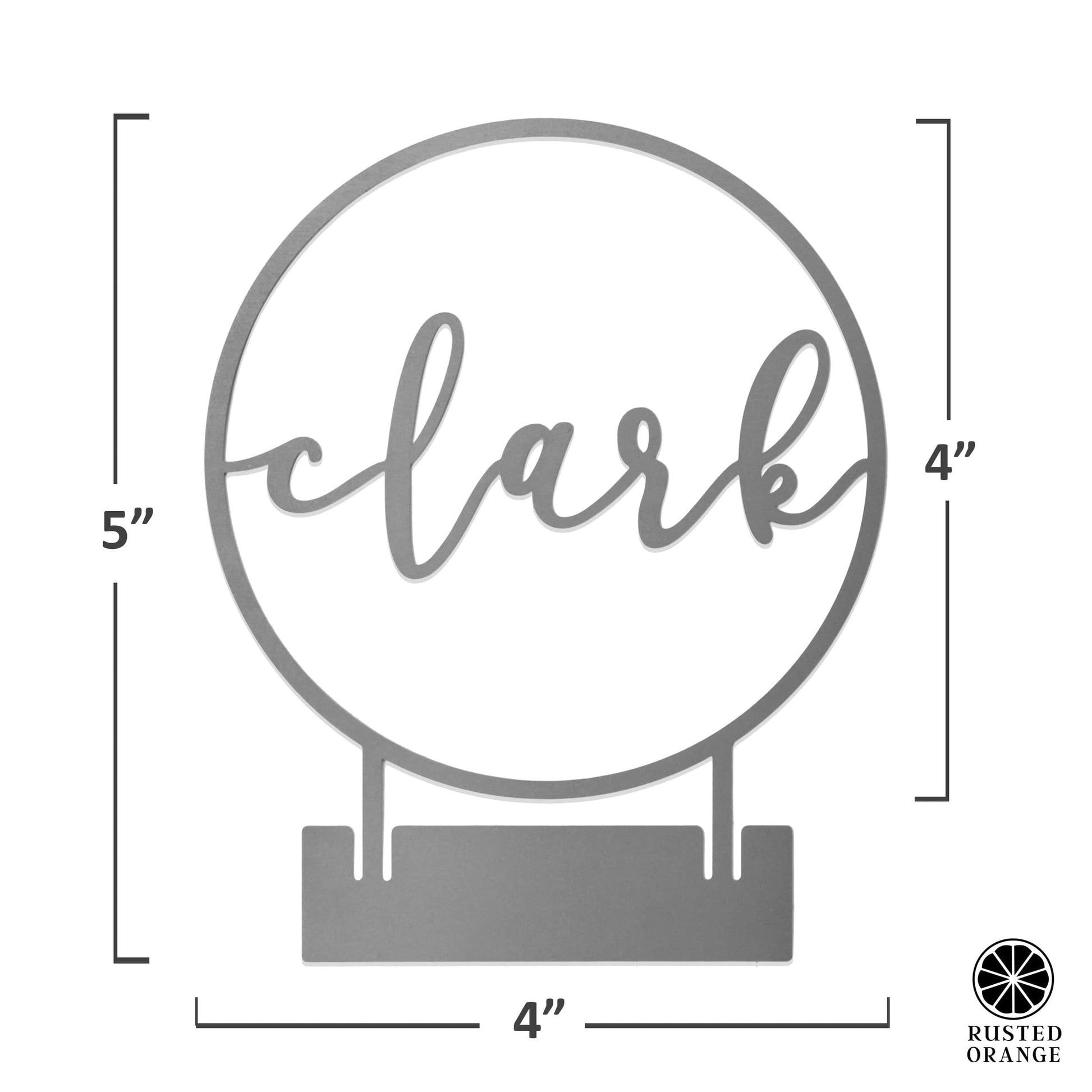 Each sign is laser-cut from steel and made in the USA. The circle frame includes a bendable tab for easy tabletop display, no additional stand needed.