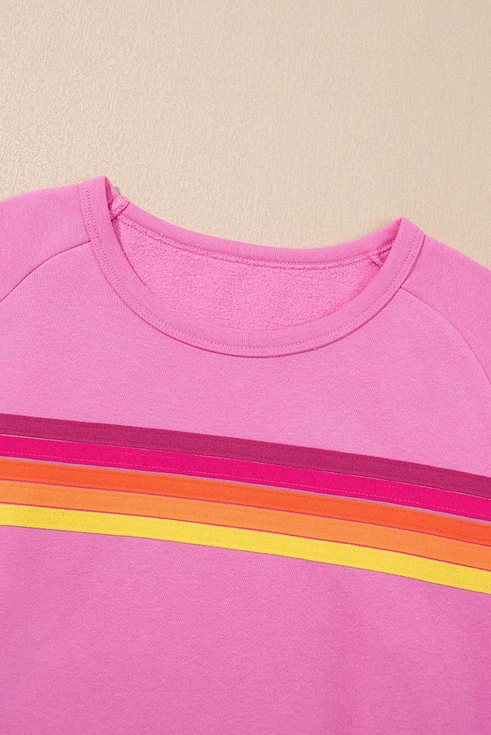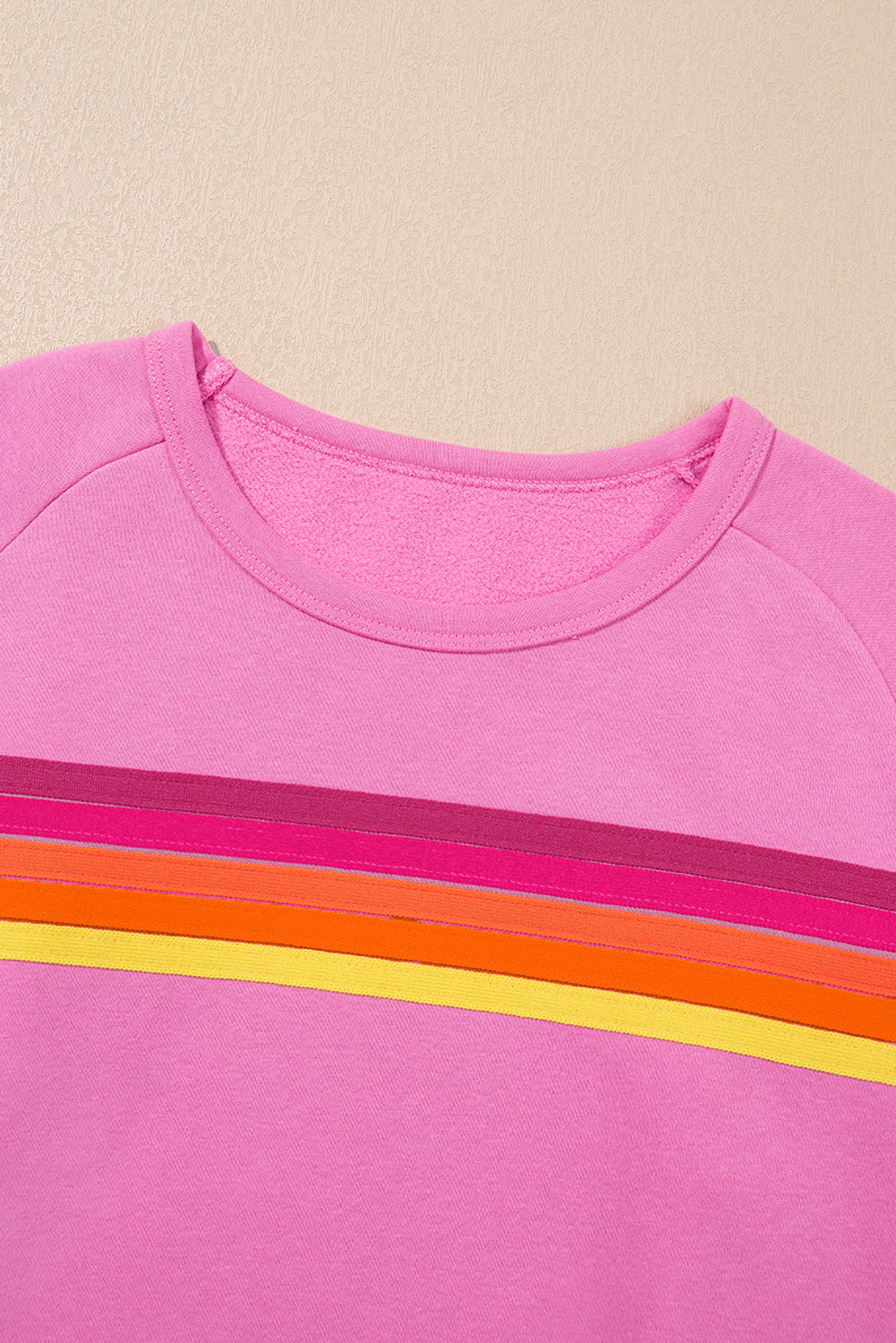 Apricot Striped Accent Pullover and Shorts Two Piece Casual Set