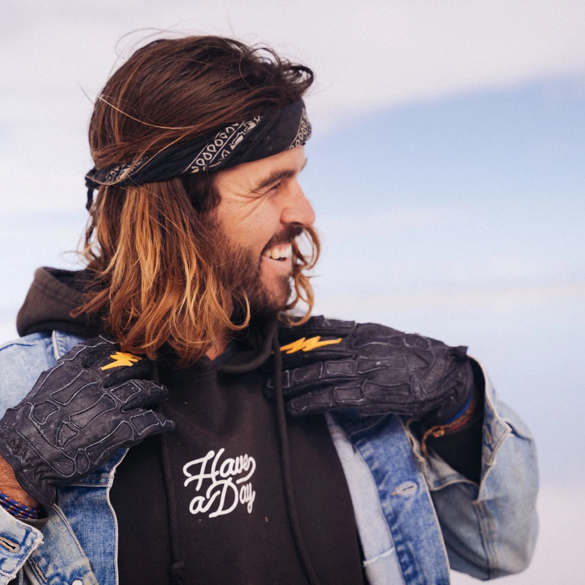 The Black Skeleton Astrapi, a blend of HANDCRAFTED ARTISTRY and ROBUST DURABILITY. Made from full grain Water Buffalo hide, this glove holds the promise of exceptional strength. The glove shapes to your hand, offering a CUSTOM-FIT COMFORT. It boasts a gold lightning bolt, meticulously hand-stitched with 40 pieces of buffalo leather, embodying the strength of astrapi (lightning in Greek). The index finger comes with a tech fabric for SMARTPHONE COMPAT