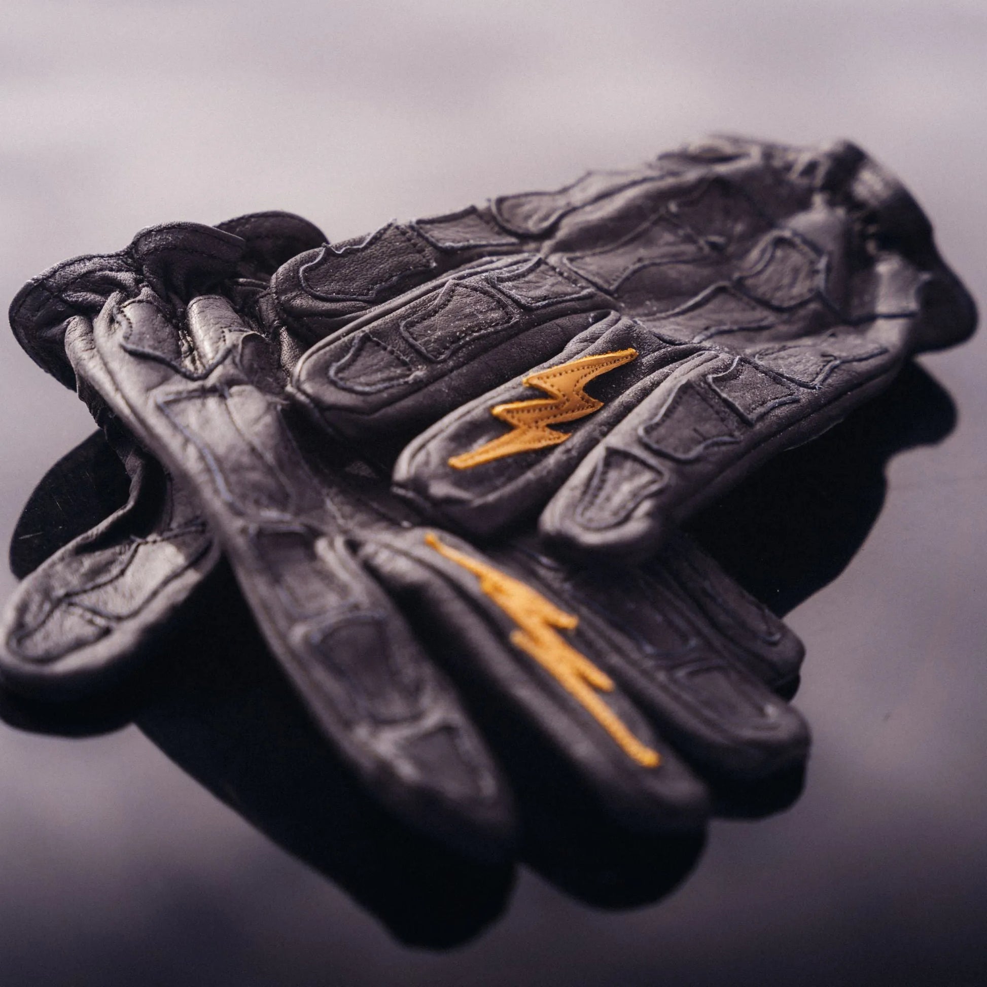 Astrapí (Lightning) Skeleton Leather Motorcycle Glove - Black on Black