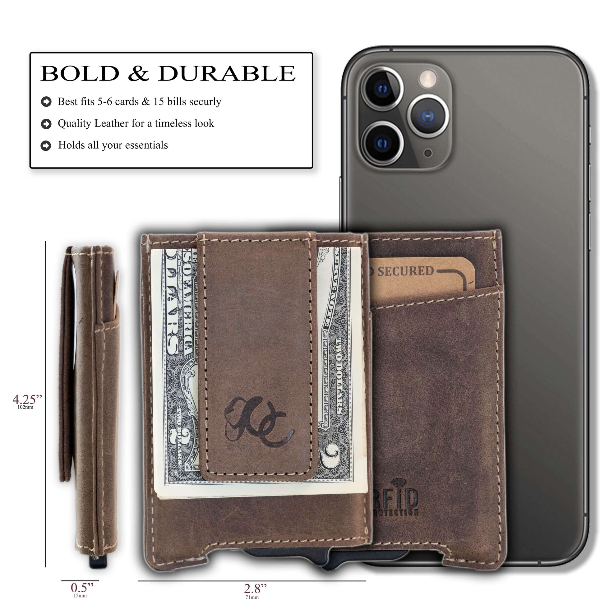 Generous Storage: Ample space for all your essentials, with capacity to hold 8 cards, an extra card slot, and a magnetic money clip for your bills. Never run out of room with this nifty wallet.
