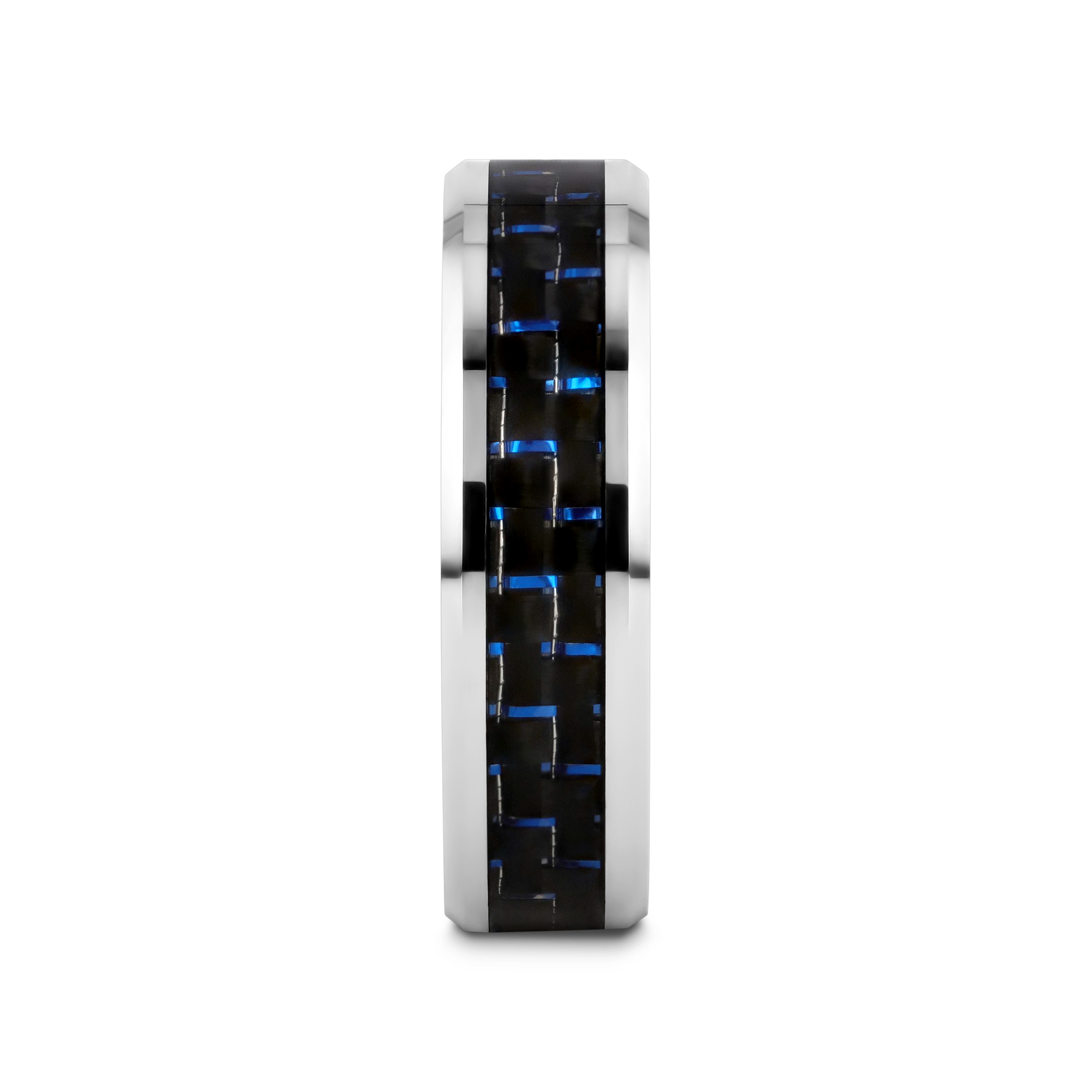 AUXILIUS Tungsten Carbide Ring with Black and Blue Carbon Fiber Inlay - 6mm - 10mm