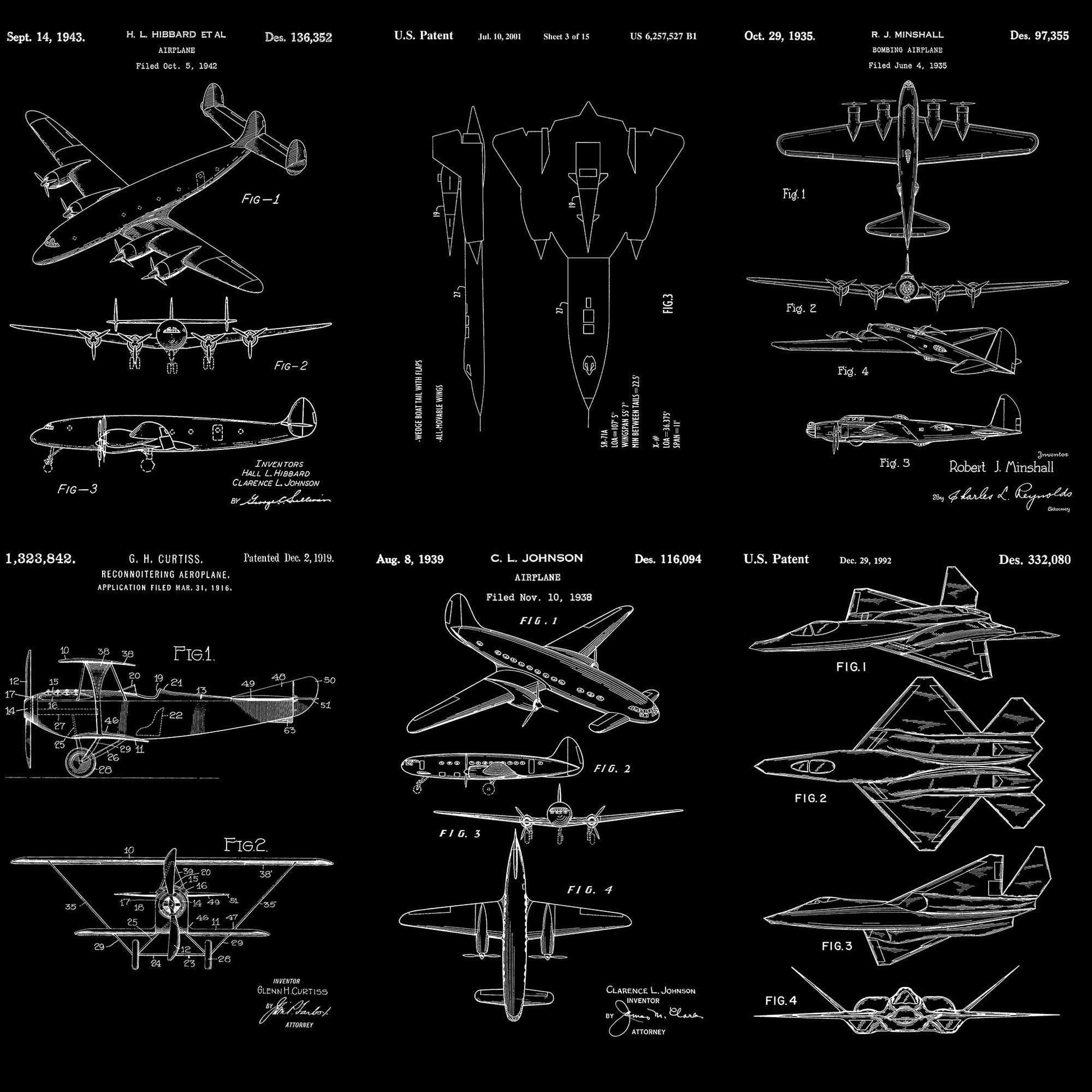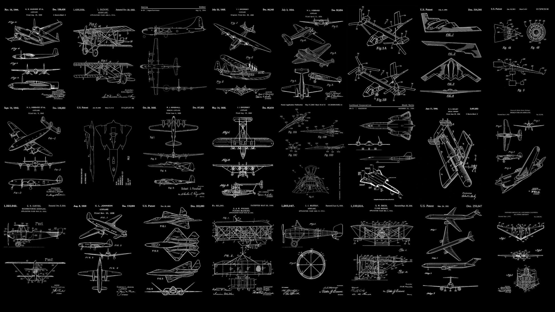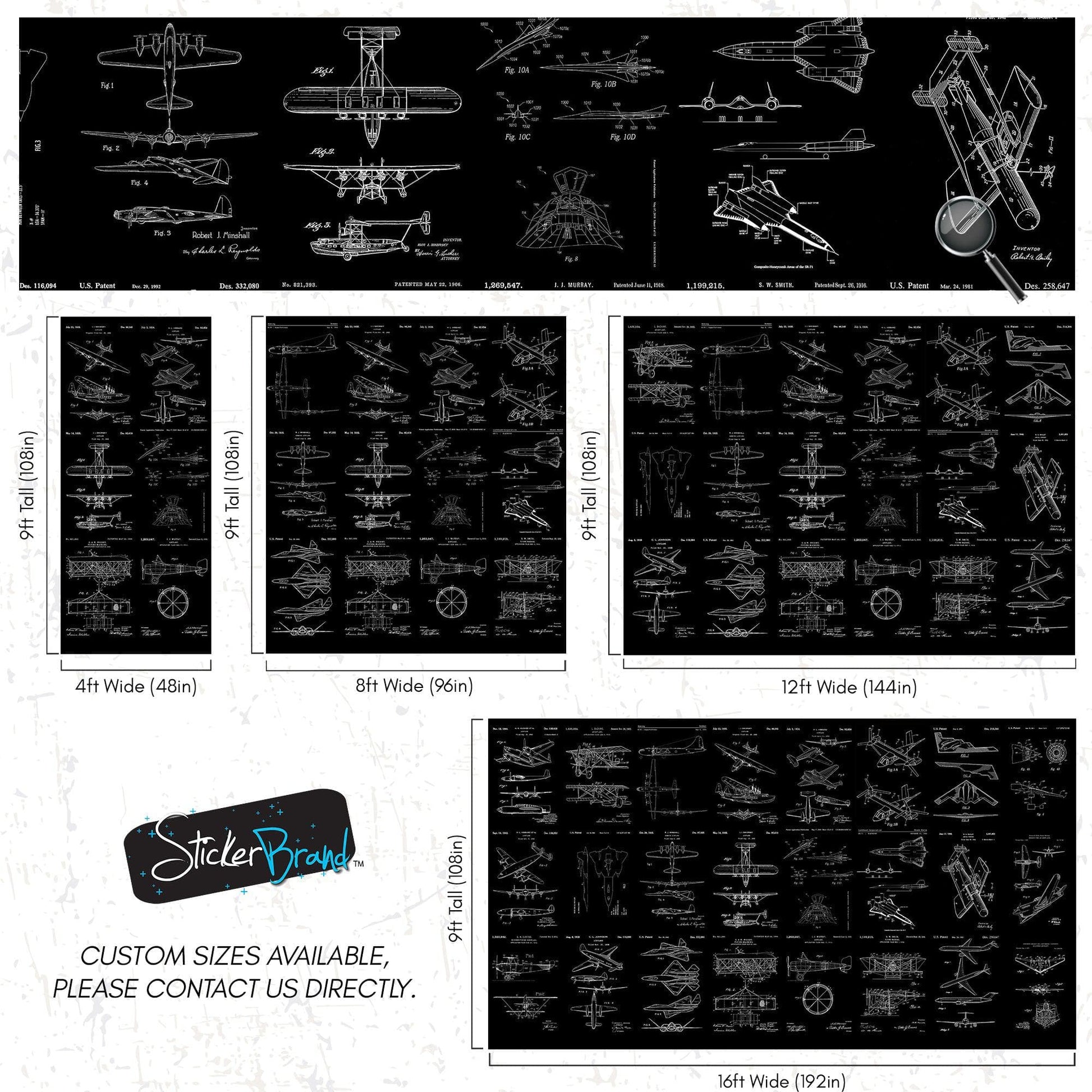 Aviation Wallpaper Mural. Featuring Military Jet and Airplane Patent Designs. #6732