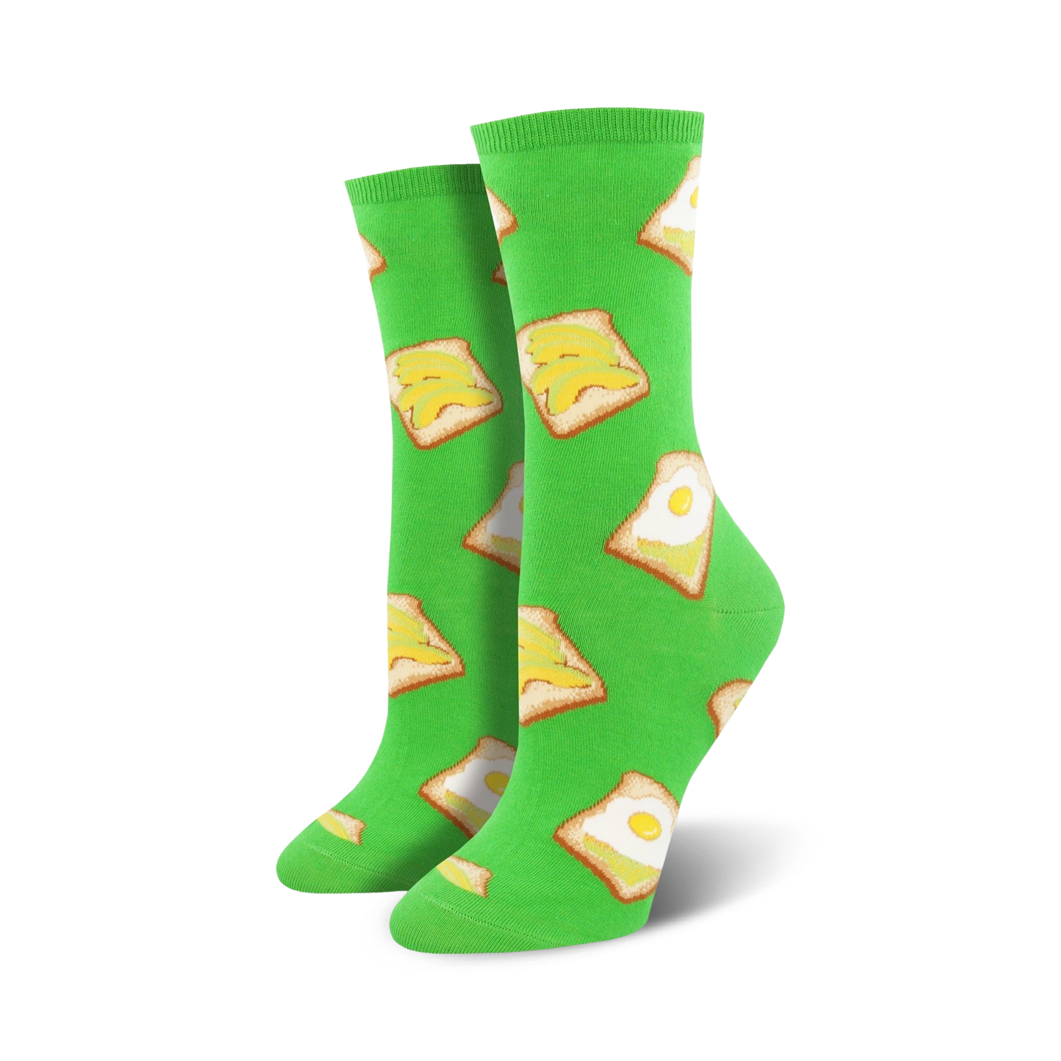 Avocado + Toast= BFFs forever. It is a known fact that avocado goes along with toast as well as peanut butter and jelly do. These women's crew socks come in a bright green color with pieces of avocado toast printed all over. With these cool socks, you can enjoy your toast with just plain ol' avocado or with a nice sunny side egg sitting on top.
