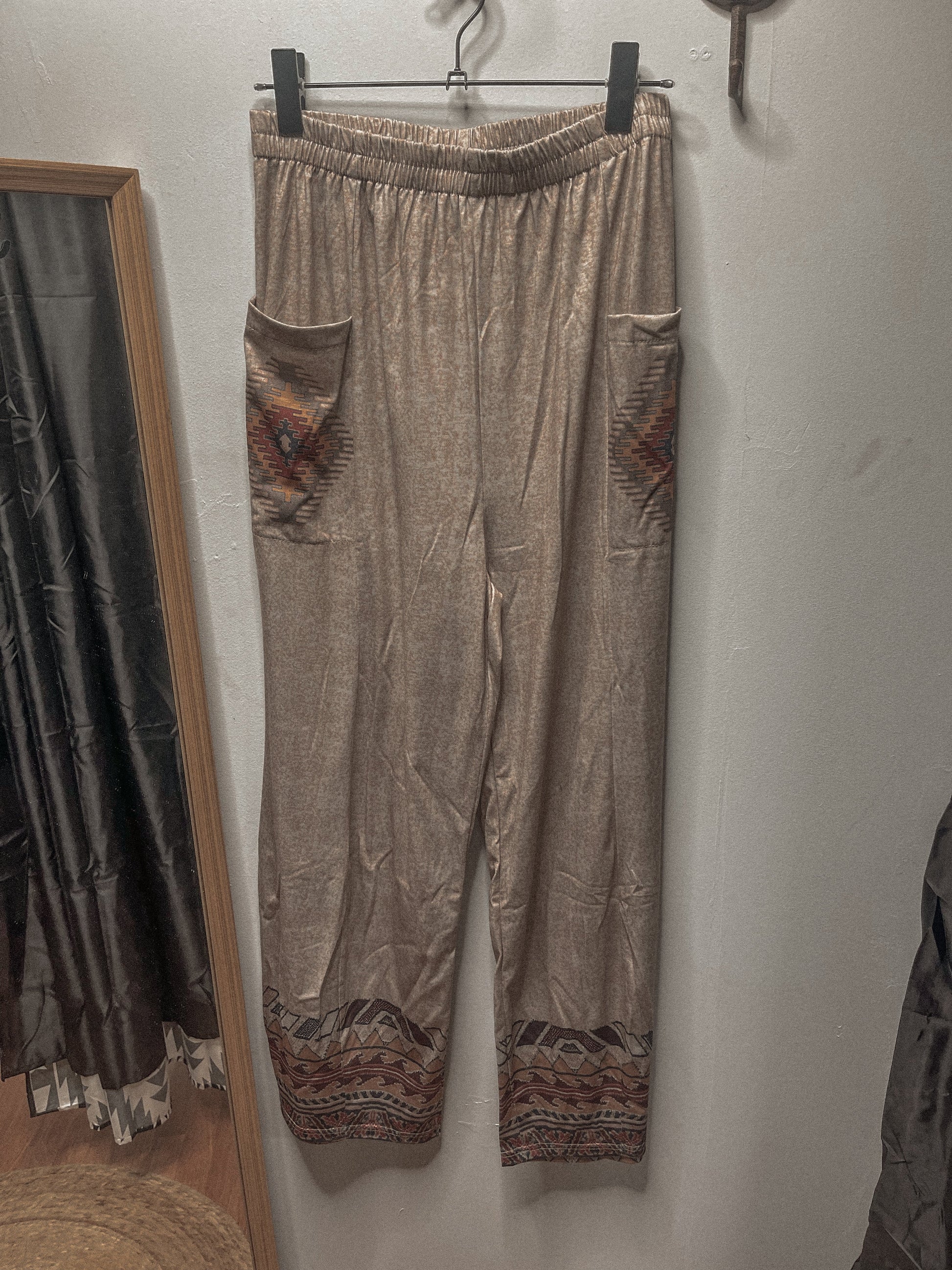 Plain Splicing Aztec Print Pockets Wide Leg Pants