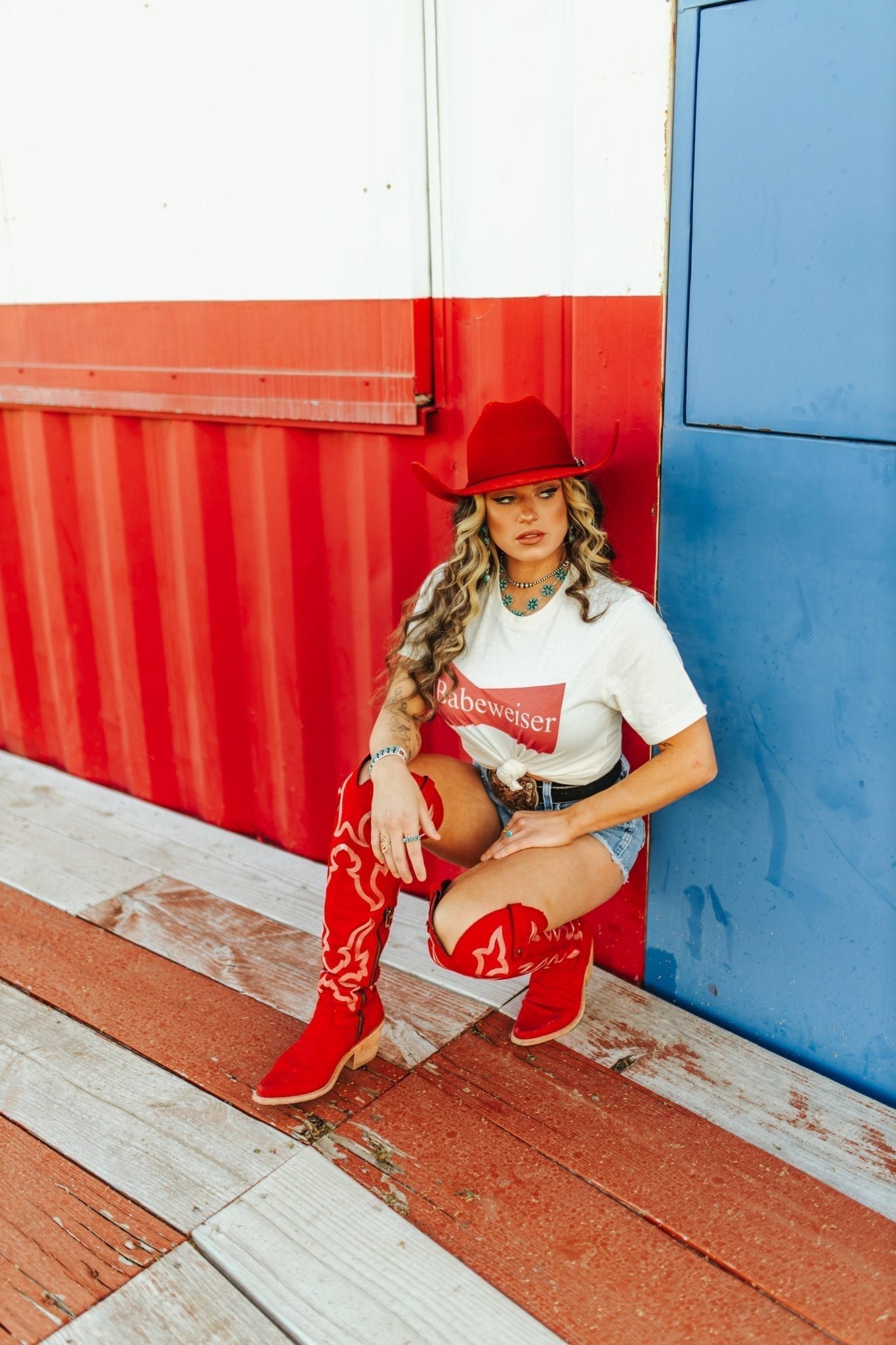 Get ready to crack open some fun with our Babeweiser Graphic Tee! This playful tee features a twist on the classic Budweiser beer logo, perfect for adding a touch of humor to your outfit. Whether you're hanging out with friends or hitting up a backyard barbecue, the Babeweiser Graphic Tee is sure to be a hit!