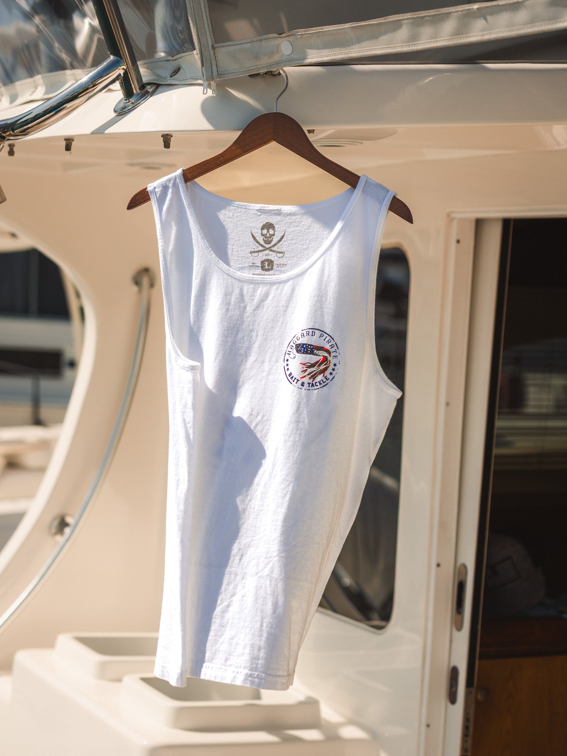 This patriotic tank brings back the spirit of old-school bait shops, printed on a soft, breathable cotton blend that’s made for long days in the heat.