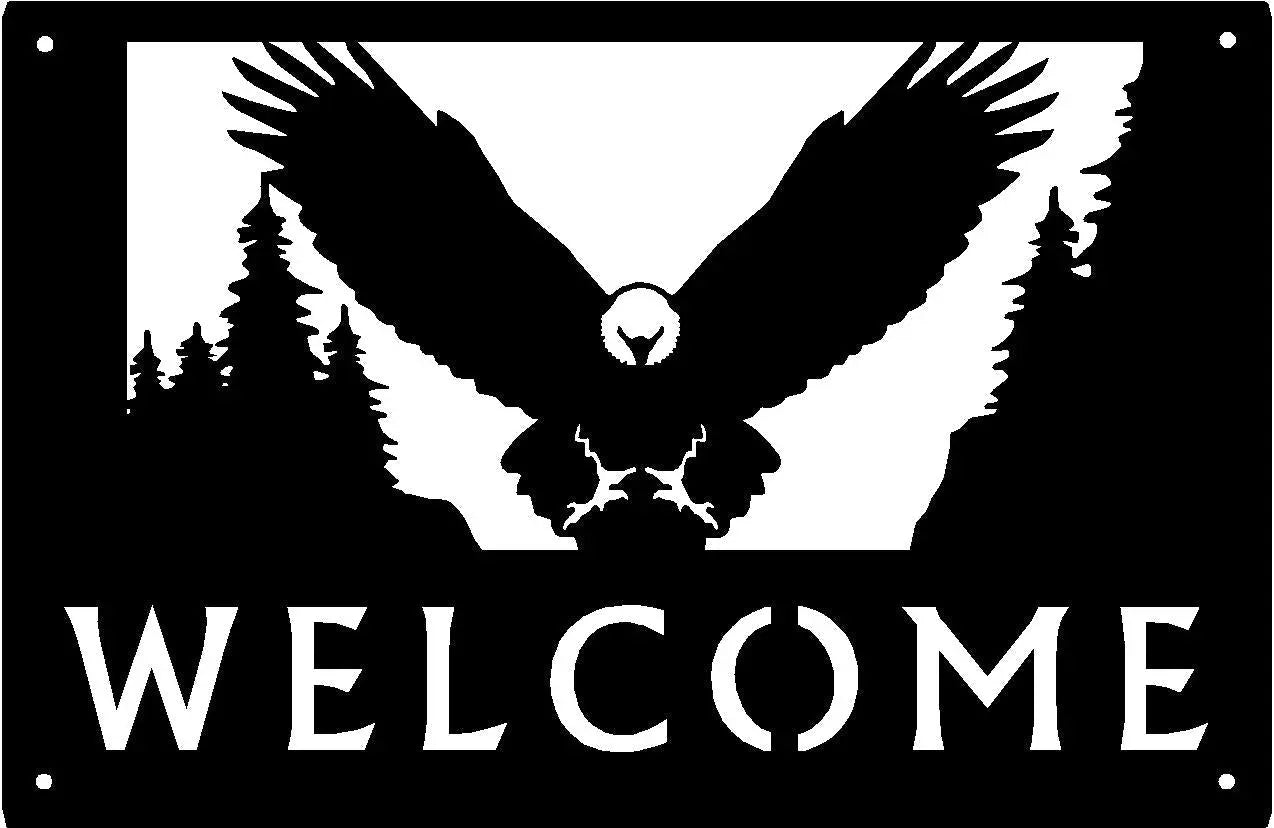 Welcome friends and family to your home with this stunning Bald Eagle Welcome Sign. Crafted from quality materials, its beautiful silhouette of an eagle in flight will bring a touch of nature and rustic charm to your entryway. Perfect for both indoors and outdoors, it's a great way to add a special touch of wildlife decor to your home.
