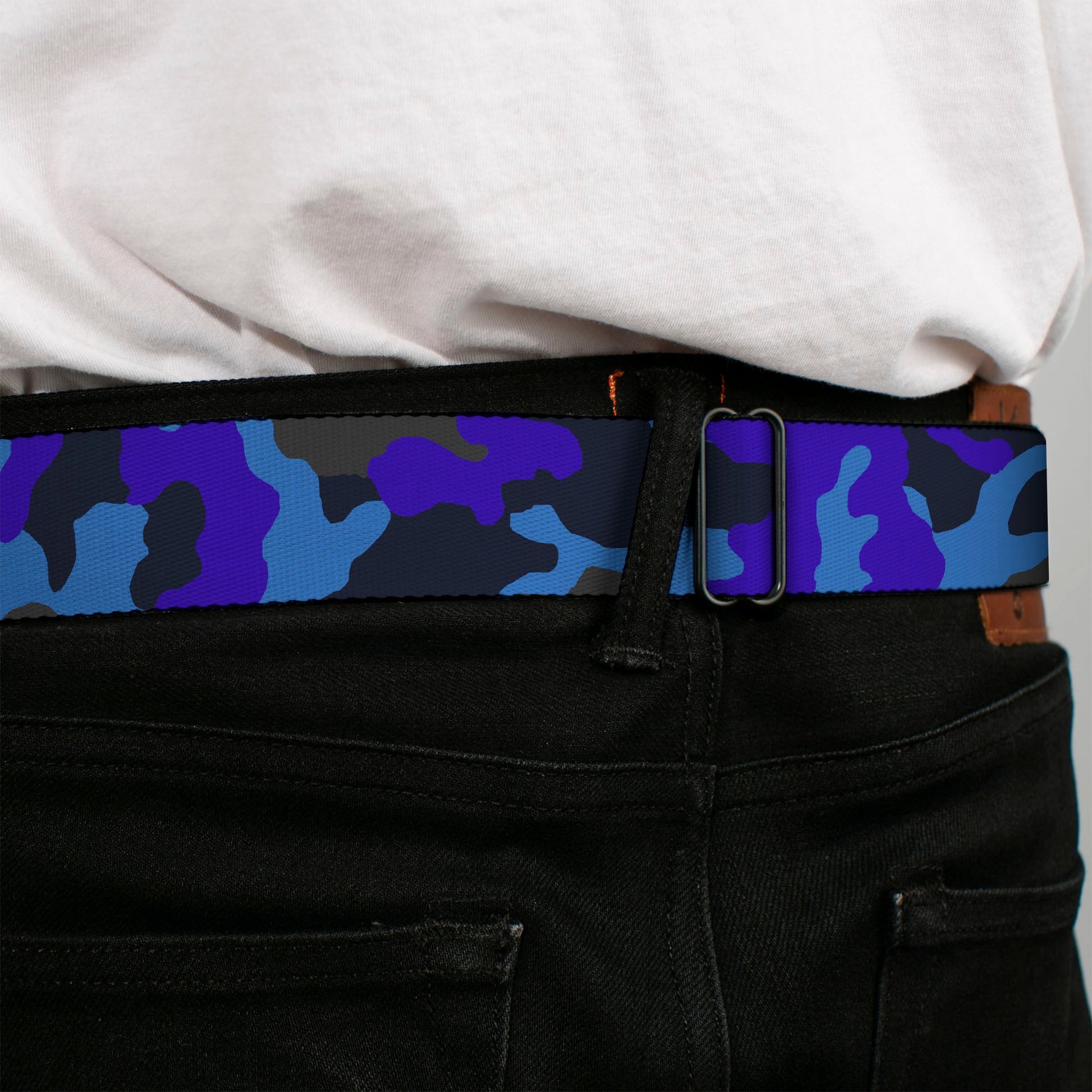 BD Wings Logo CLOSE-UP Full Color Black Silver Seatbelt Belt - Camo Blue Webbing