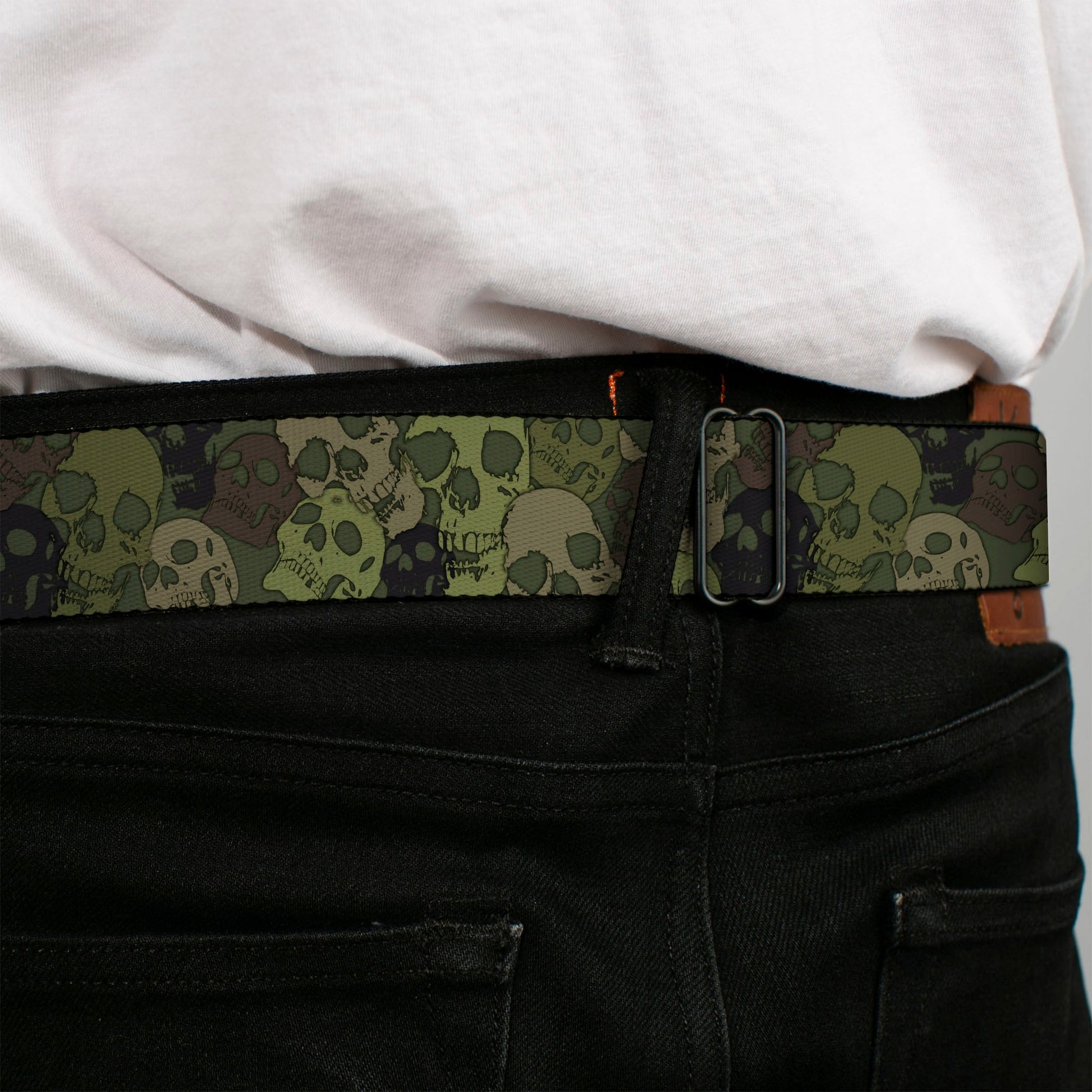 BD Wings Logo CLOSE-UP Full Color Black Silver Seatbelt Belt - Camo Olive Skull Yard Webbing