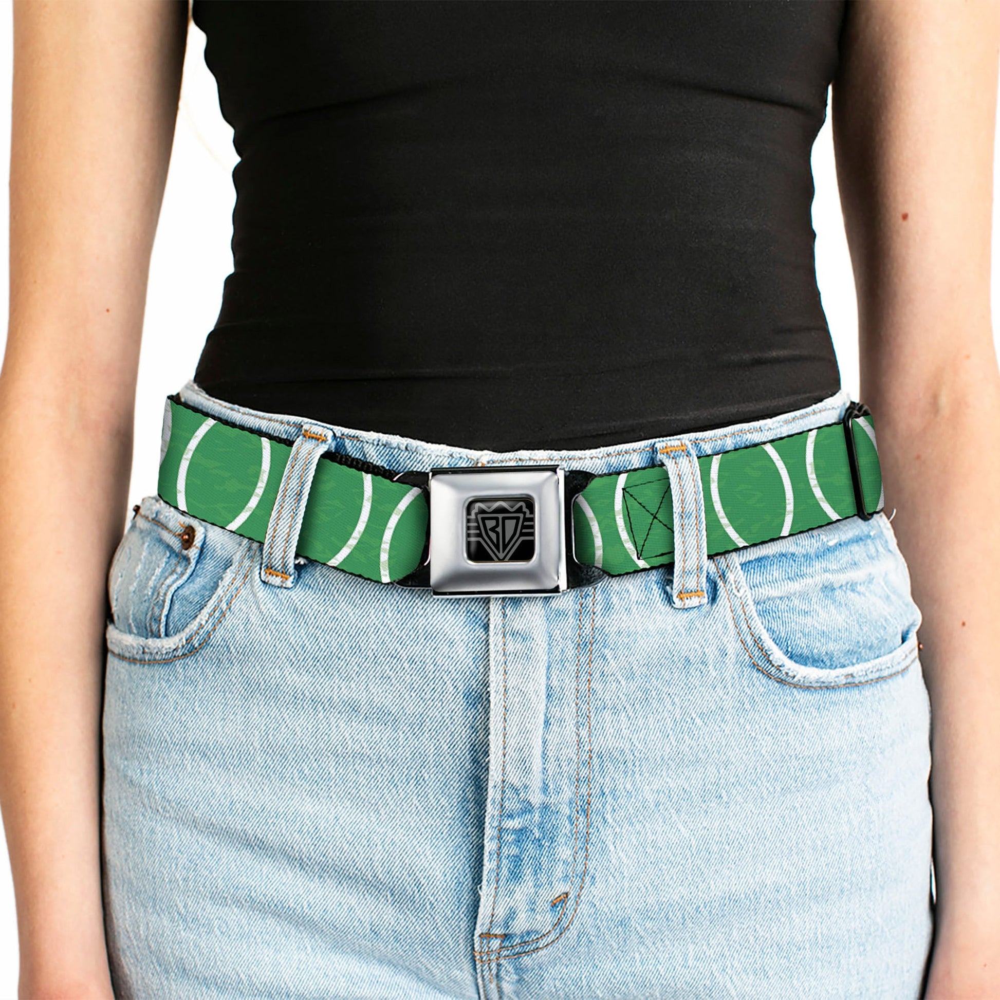 BD Wings Logo CLOSE-UP Full Color Black Silver Seatbelt Belt - Rings Camo Neon Green/White Webbing