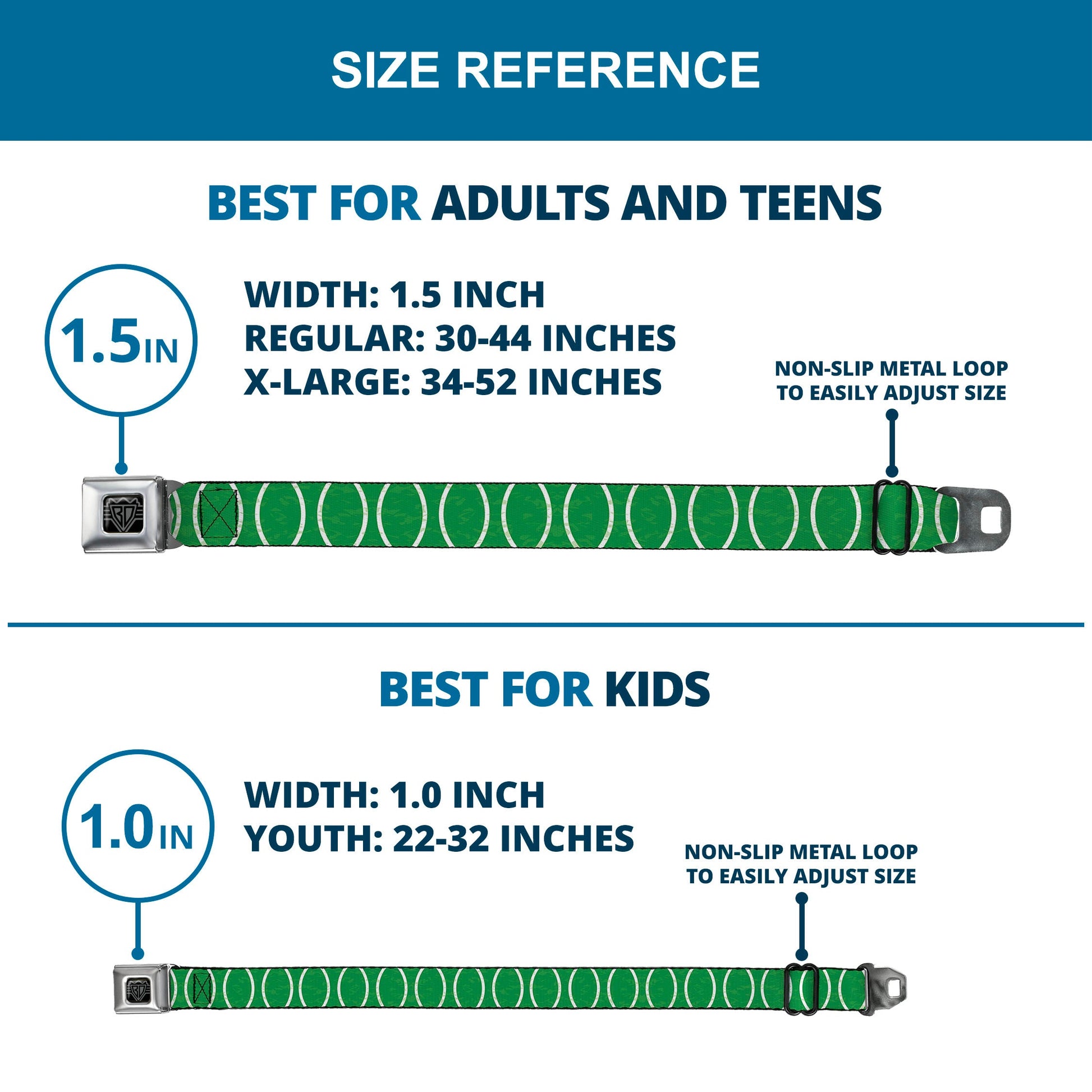 Buckle-Down's iconic Seatbelt Belt is a cool, smart, and exciting blend of fashion and function. Always a conversation starter, our Seatbelt Belt adjusts to perfectly fit your waist while showcasing your unique sense of style. Our Seatbelt Belts are made with authentic automotive style seatbelt buckles making them easy to open and close at the push of a button. Our adult-size Seatbelt Belts are 1.5 inches wide and our kid-sized Seatbelt belts are 1.0 inch wide. This product is Handcrafted in USA by Buckle-Down Inc. and officially licensed by Buckle-Down.