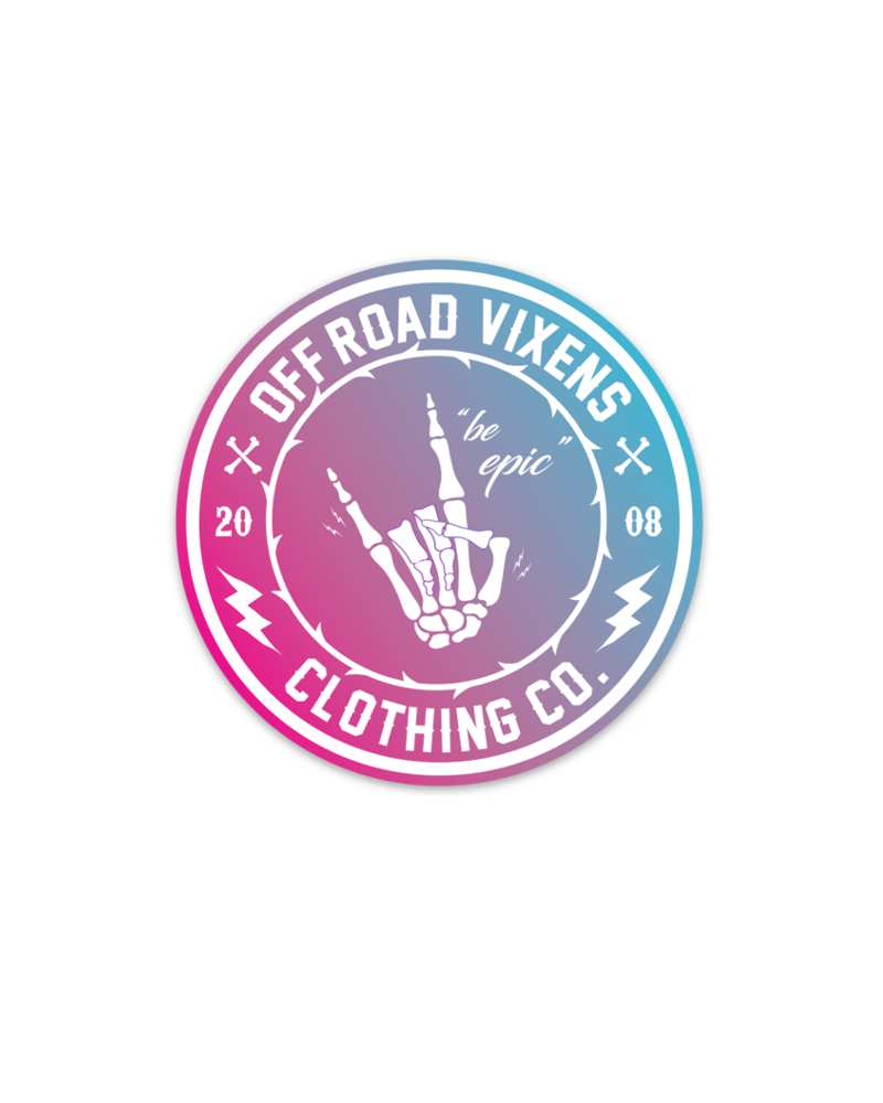 Printed Vinyl Decal with our popular Be Epic design in our Off Road Vixens brand colors. Big enough for your rig small enough for your water bottle or computer.