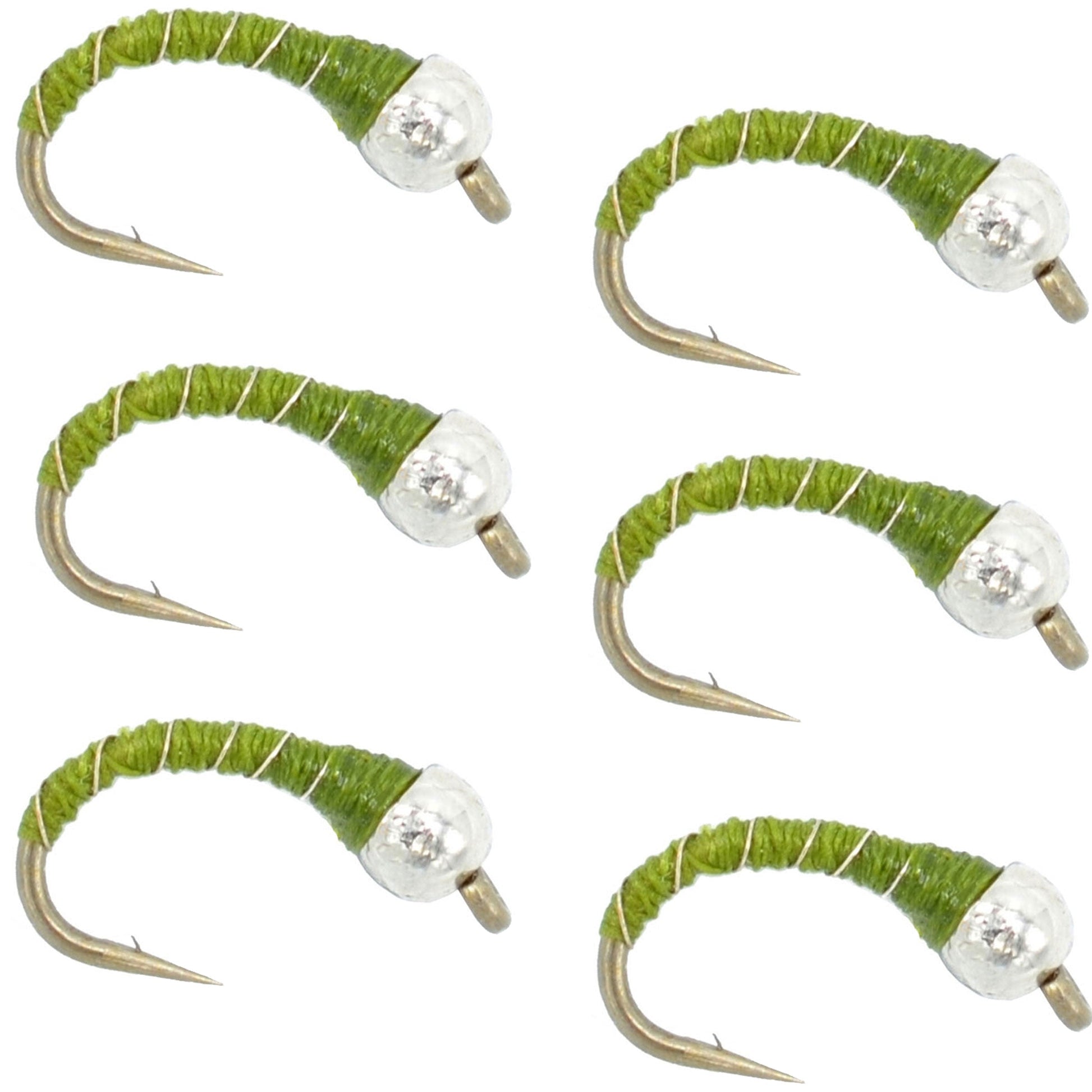 Bead Head Olive Zebra Midge Still Water Nymph Fly - 6 Flies Hook Size 14