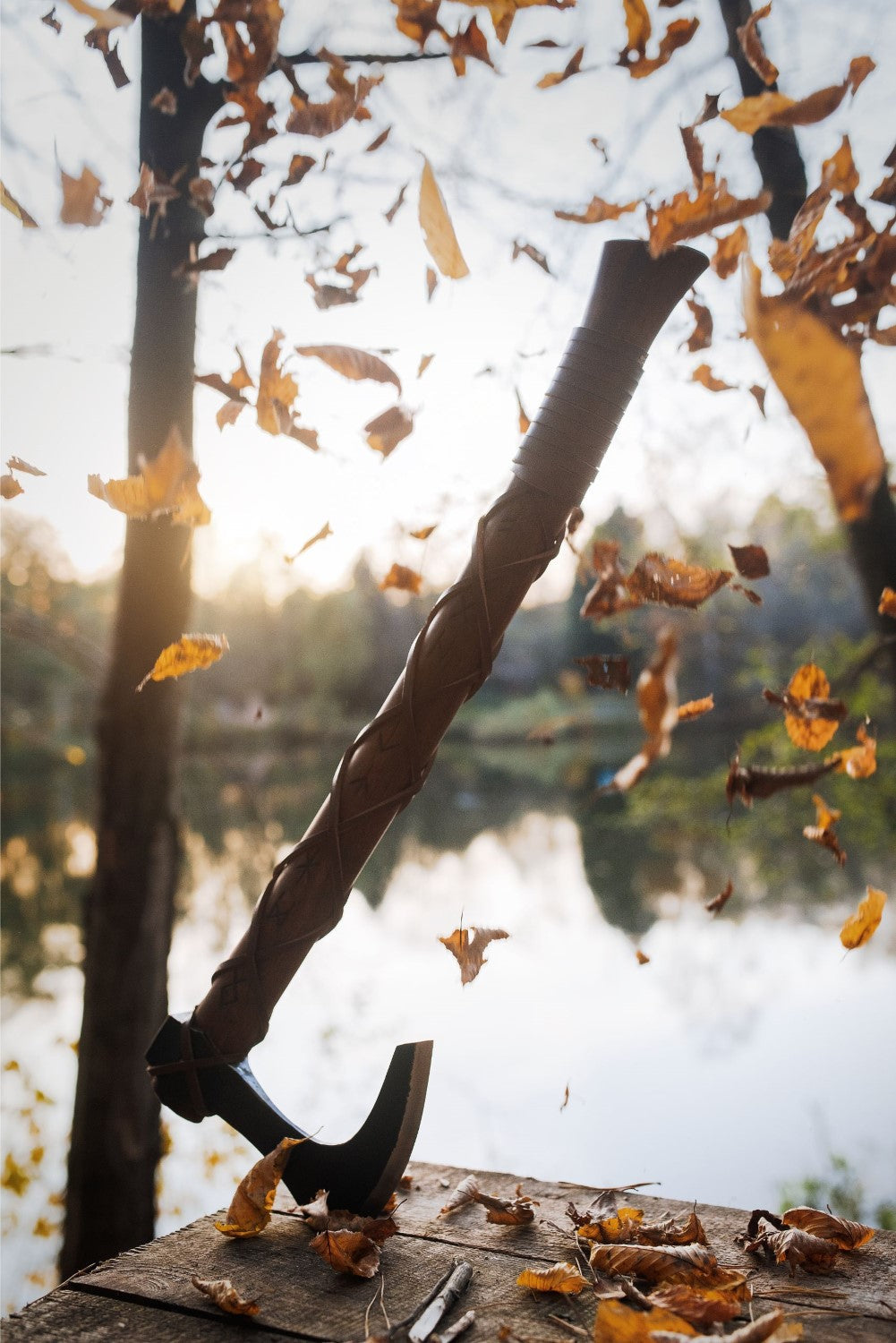 ⚔️ BUILT FOR USE - While we do not endorse this item as a weapon, it is no toy. It is fully functional as a tool or an authentic reenactment piece and features a utility sharp blade edge. The axe handle is made from one piece of quality aged teakwood, one of the most hard and durable timbers available. The handle features features a thick harness leather cross stitch and grip. Also, this axe is NOT a log splitting maul made for chopping heavy logs.