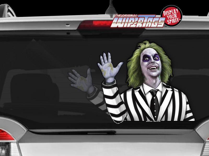 It's showtime! Wave to the world's funniest and most ornery corpse. Universal size fits most vehicle rear wipers. Both the WiperTag arm and window decal are removable and both are UV protected against fading. The window decal is also laminated for additional protection. The arm is double sided (reversible) for left or right side rear wiper.