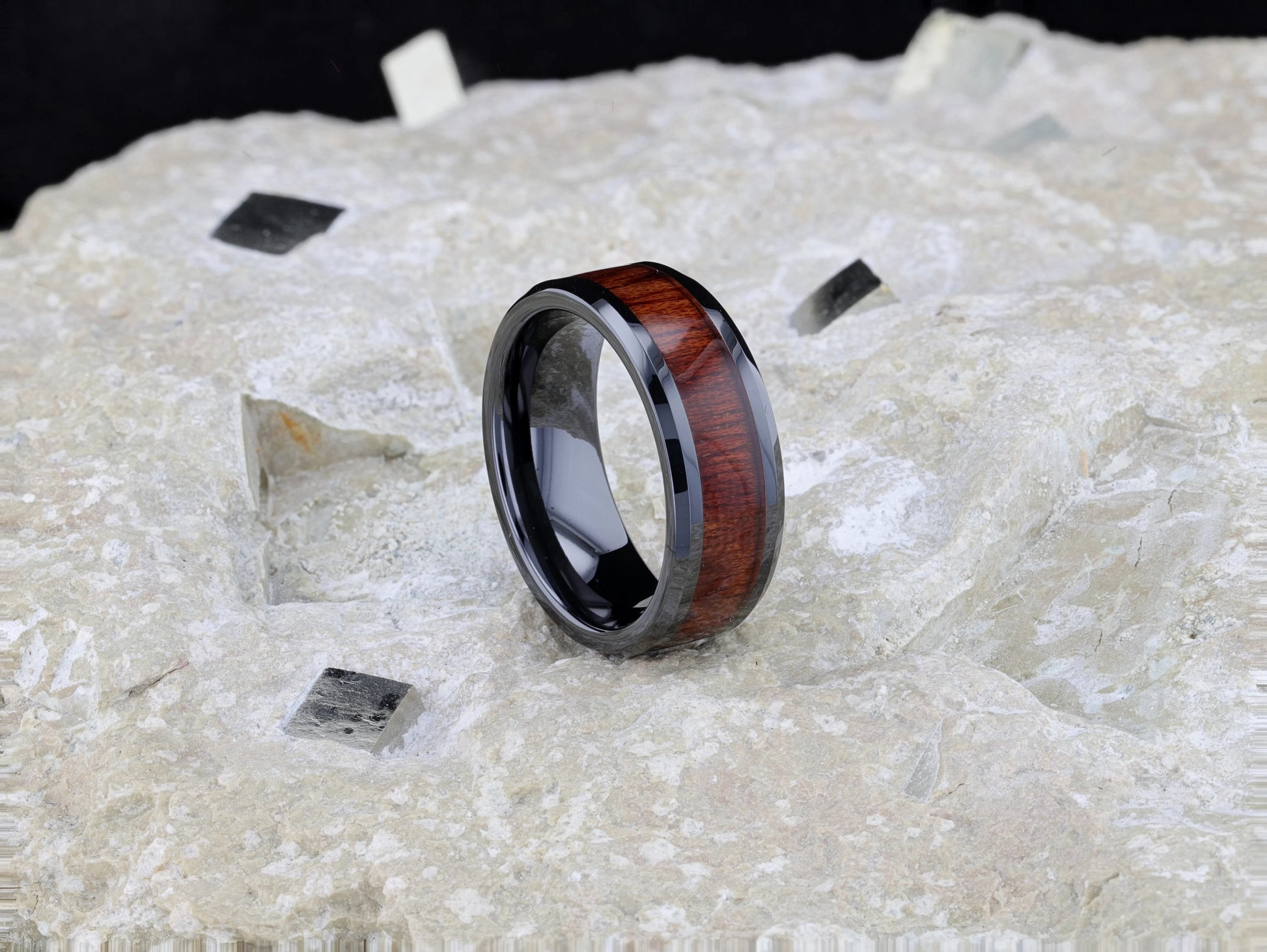 - These rings are made with real wood inlay, adding to their exclusivity.