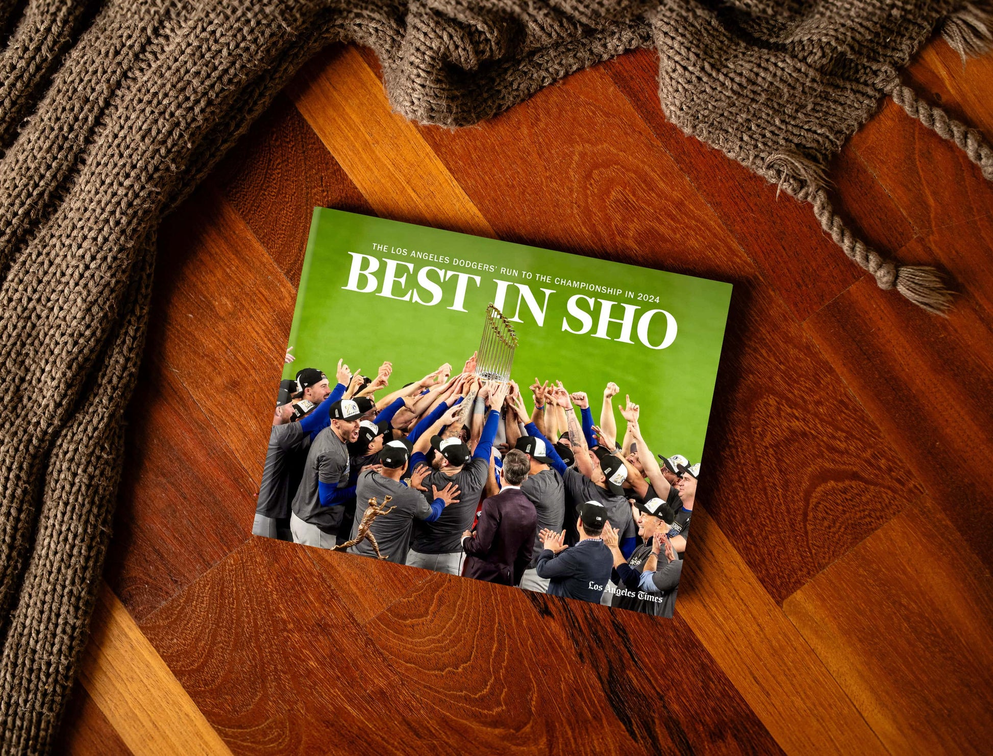 Step into the heart of baseball history with "Best in Sho: The Los Angeles Dodgers’ Run to the Championship in 2024," a stunning hardcover coffee-table book by the Los Angeles Times. This 160-page masterpiece captures the electrifying journey of the Dodgers’ season that culminated in a dominating World Series title against the New York Yankees. Immerse yourself in exclusive stories and breathtaking photos that chronicle every pivotal moment of L.A.’s triumphant season. With its intimate, insider's view, this book celebrates the grit and glory of the Dodgers' unforgettable championship run. Perfect for die-hard fans and collectors alike, "Best in Sho" offers a front-row seat to one of baseball's greatest narratives, bringing you closer to the action and emotion than ever before.