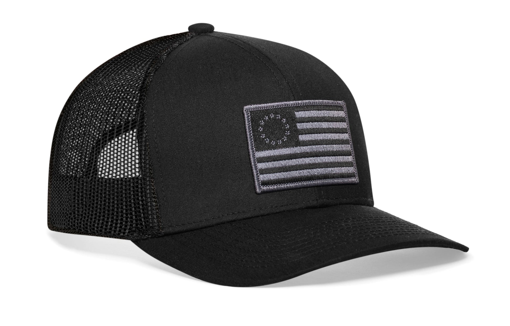 Betsy Ross Flag Trucker Hat | Black USA Snapback