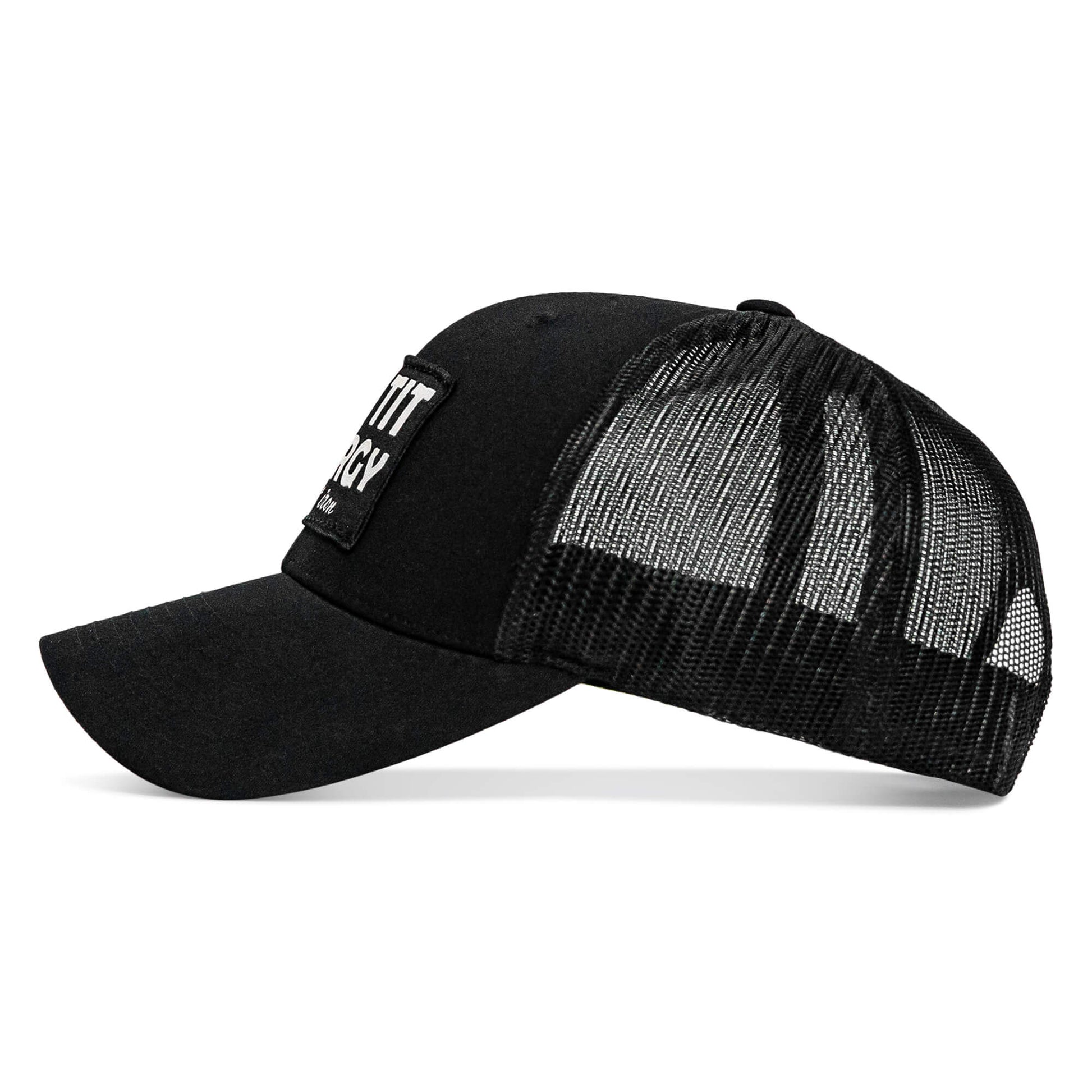 A proper fitting snapback that combines everyday style with comfort and functionality. Featuring a mid-profile, structured fit, the front is crafted from durable cotton twill, while the polyester mesh back ensures breathable wear. The NO Sweat Edition inner sweatband helps keep you cool and dry, even on busy days. With an adjustable plastic rear closure, this hat fits just right, every time. Finished with custom patches and embroidery done in-house, it's a simple yet stylish choice for any occasion.