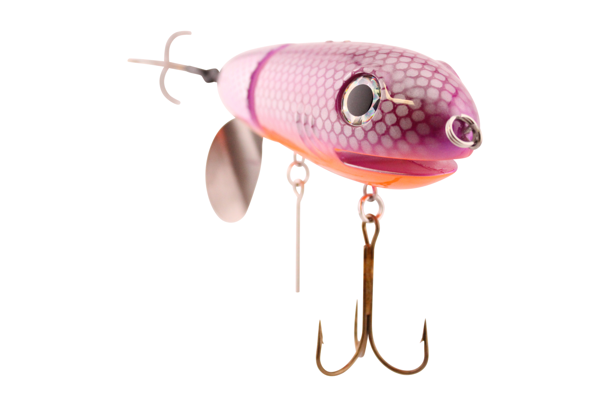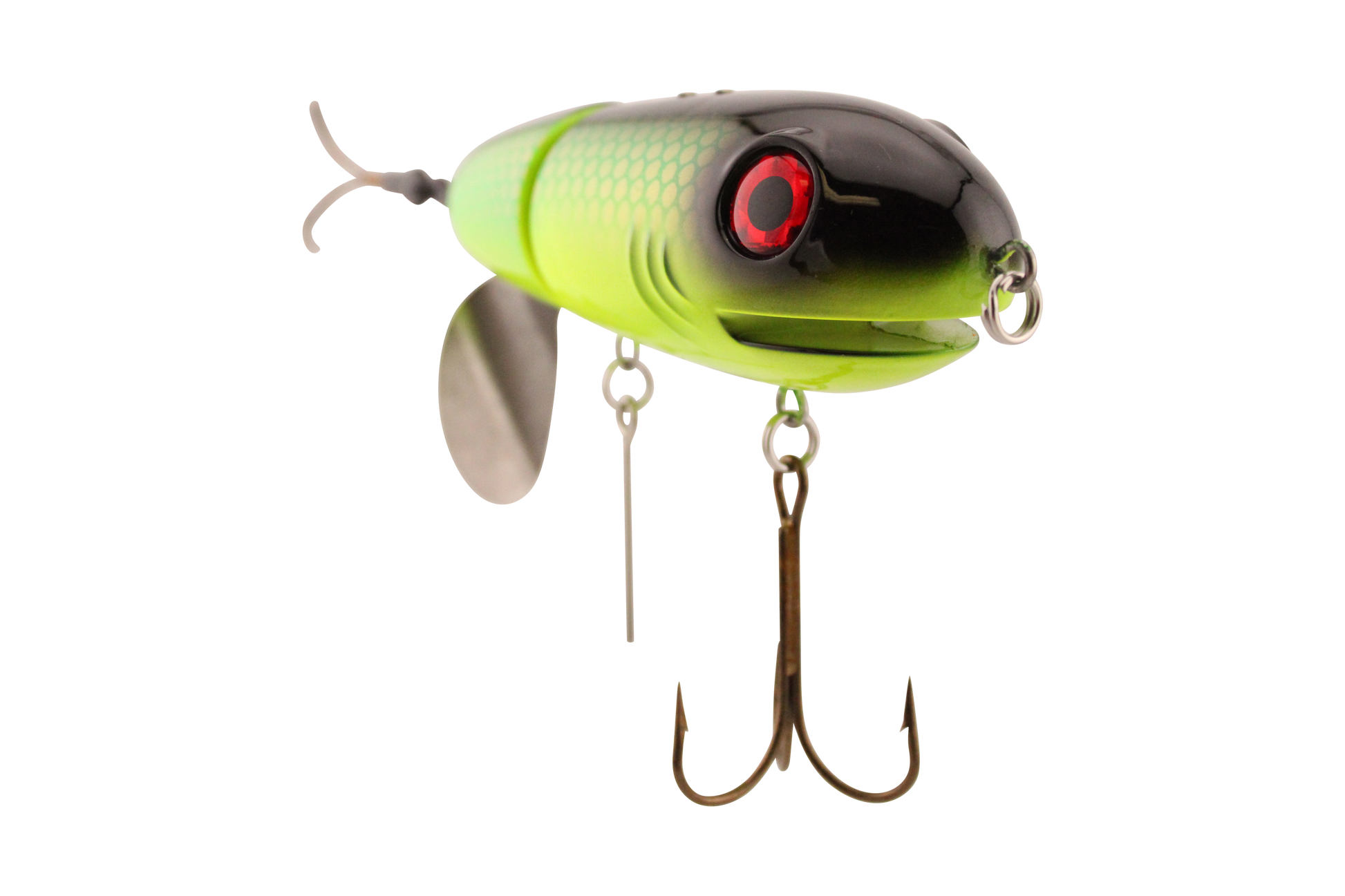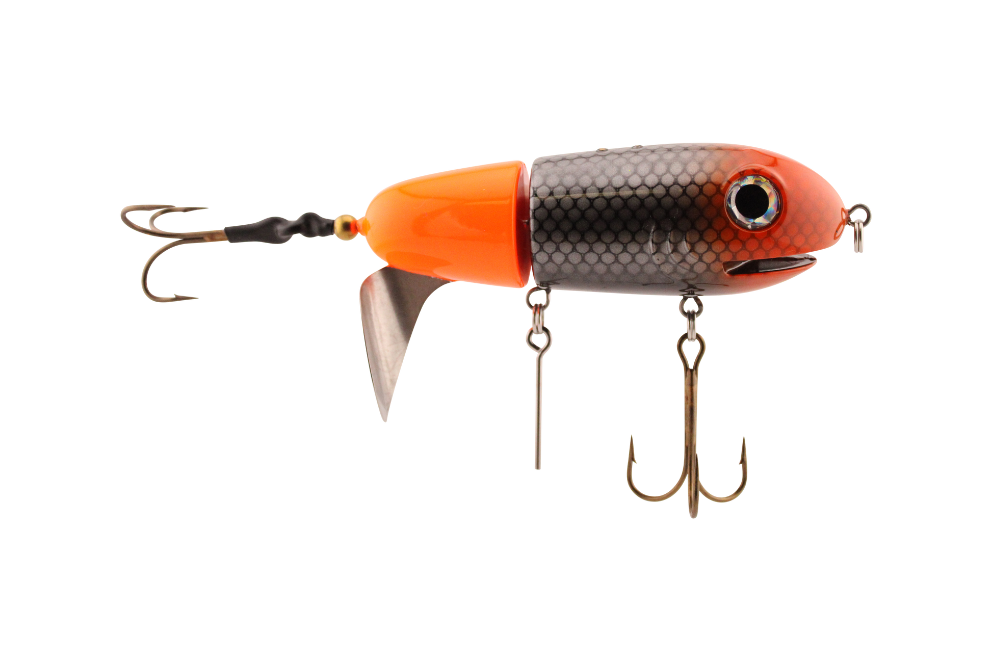 The BigMakk takes topwater design to the next level with its No Roll lip cut design which acts as a keel keeping the BigMakk running perfectly even at high speeds. This No Roll keel coupled with the fact that the Big Makk’s tail prop rotates counterclockwise means nothing sounds like, nothing runs like and nothing gets hits as hard as BigMakk.