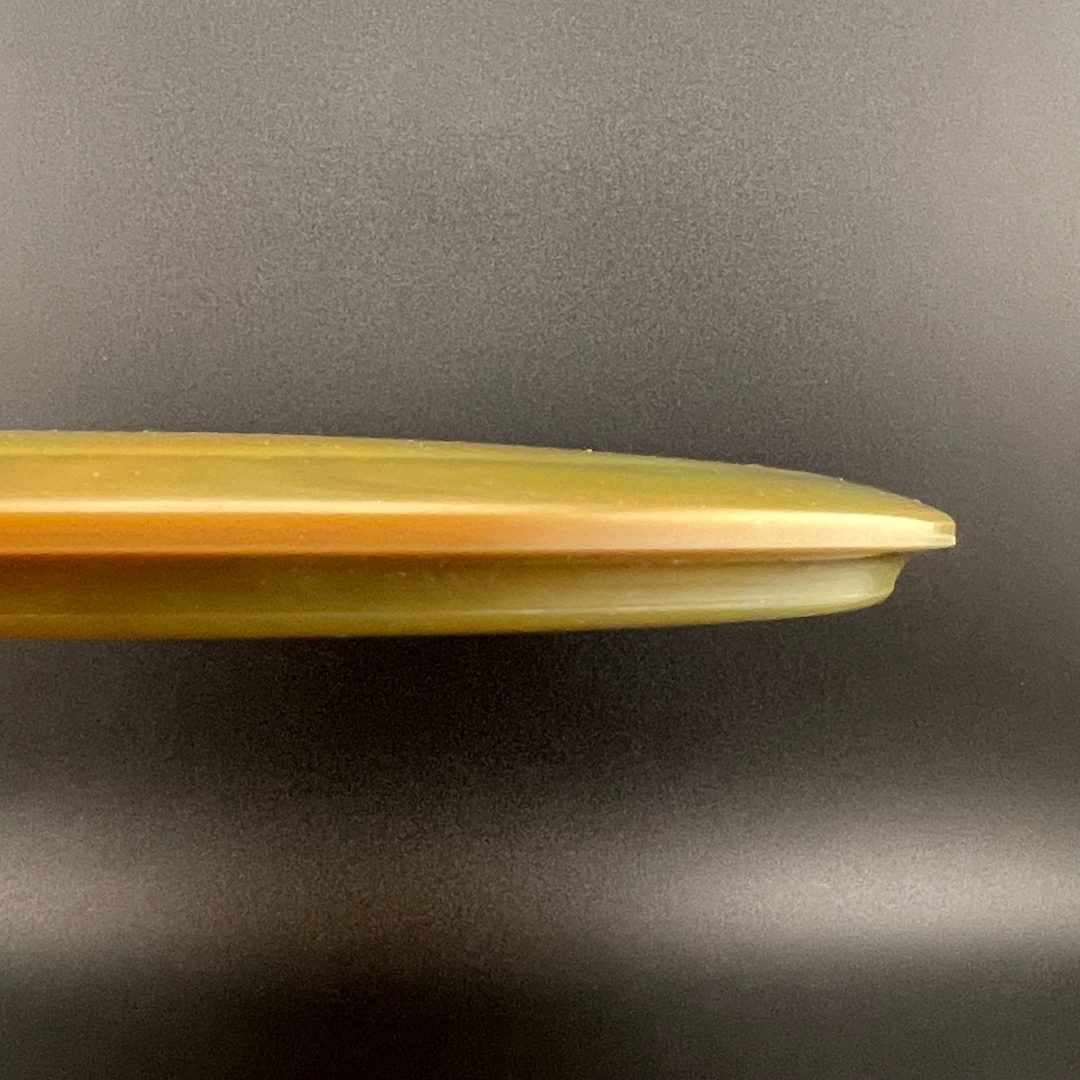Biohazard plastic from Doomsday Discs is a mostly translucent premium blend with a lot of flexibility and good grip. It's a gummier option than most premium discs on the market, and it comes with the same dirty, splotchy look as Toxic Waste, having been through the cataclysmic production process of the apocalypse.