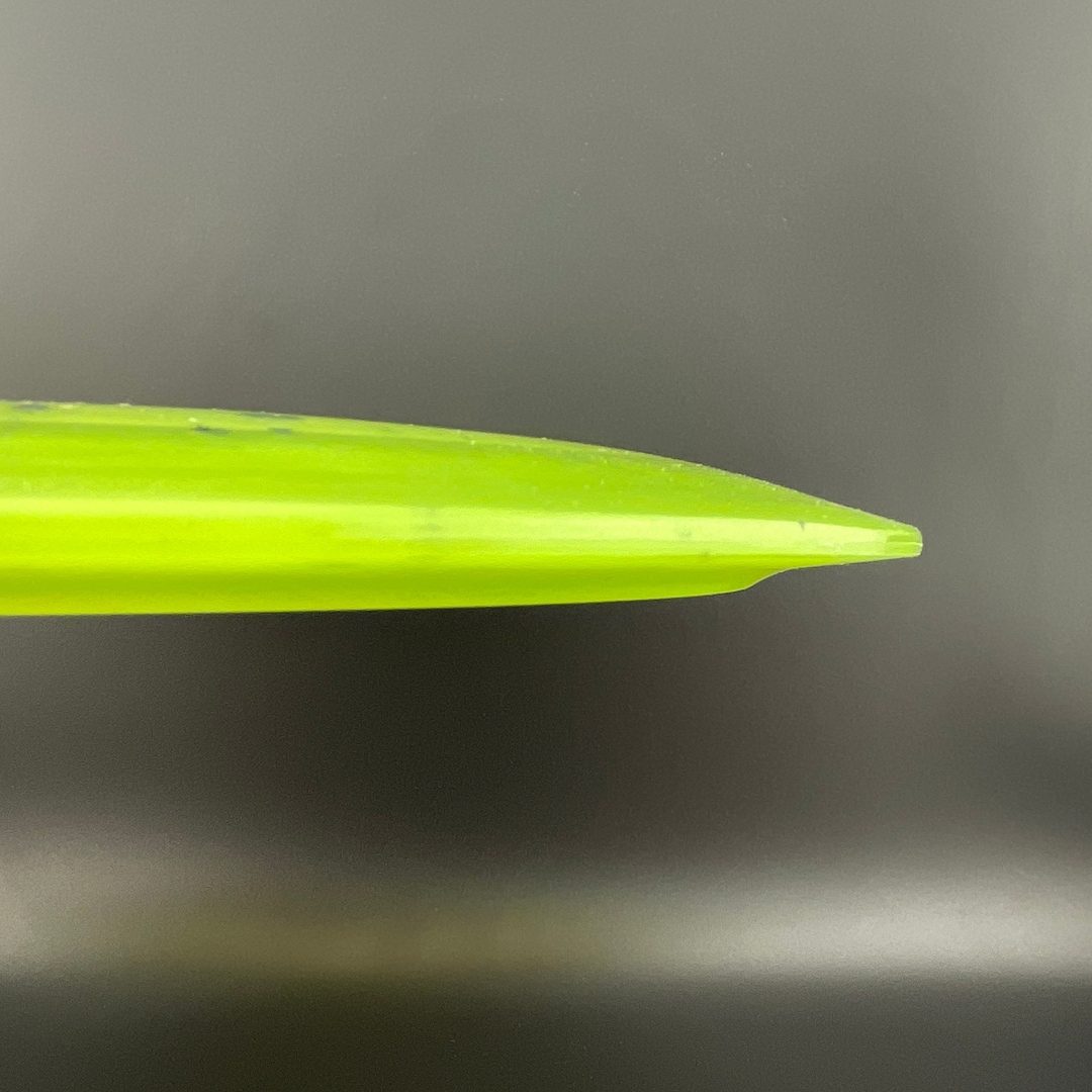Biohazard plastic from Doomsday Discs is a mostly translucent premium blend with a lot of flexibility and good grip. It's a gummier option than most premium discs on the market, and it comes with the same dirty, splotchy look as Toxic Waste, having been through the cataclysmic production process of the apocalypse.