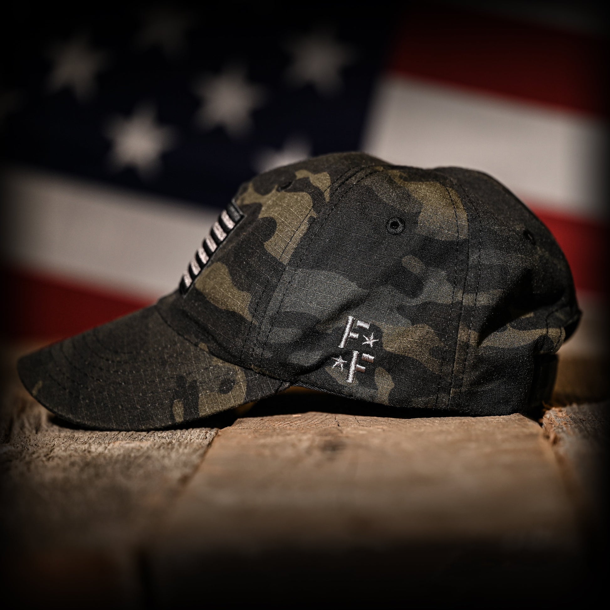 BLACK MULTICAM FULL FABRIC AMERICAN FLAG RANGE HAT