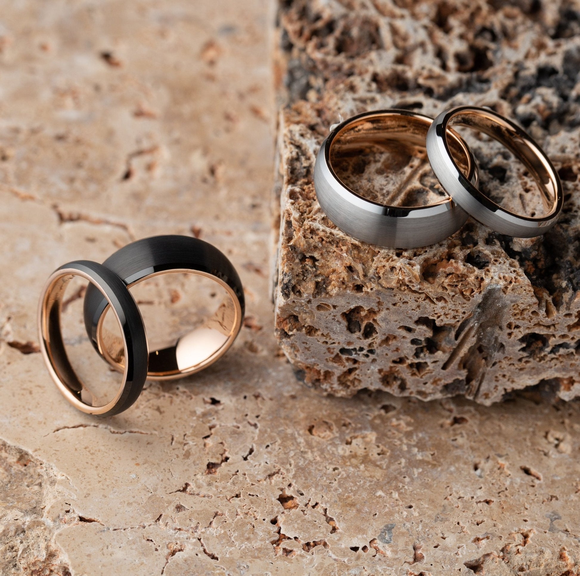 - Full Tungsten Ring with Colored Rose Gold Interior